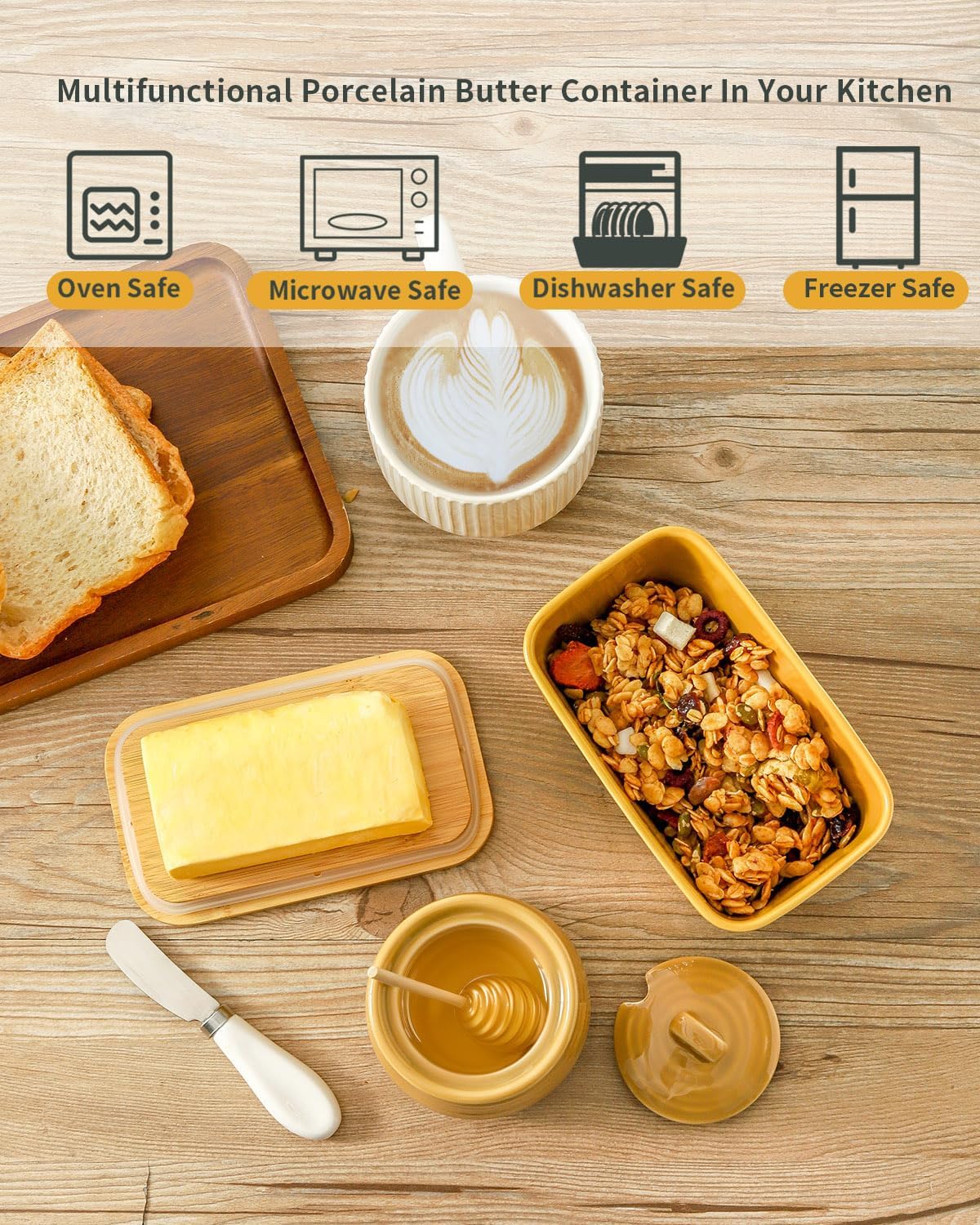 - DURABLE PORCELAIN MATERIAL- Dishwasher Safe:Tikooere butter dish with cover is made of high quality porcelain material, which is sturdy and durable. What's more, it's dishwasher safe, saving you time and effort in cleaning and ensuring it looks as good as new every time you use it.
