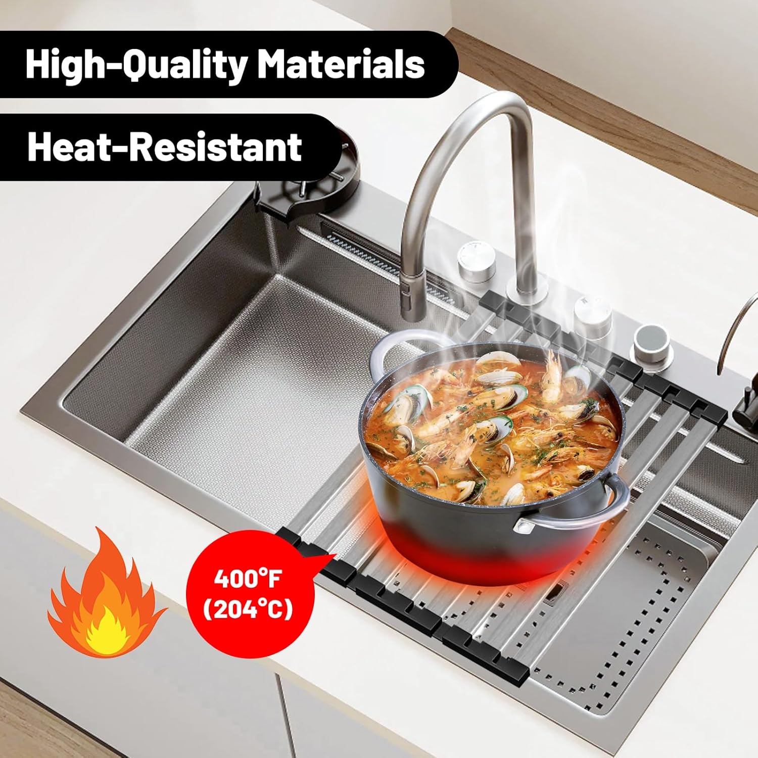 - Foldable Sink Drying Rack: TIKNIK foldable kitchen drying rack is designed with 9 stainless steel pieces, fixed firmly by silicone. Made of silicone and 304 stainless steel with sturdy construction, the foldable drain rack over the sink is sturdy and rustproof. Suitable for most kitchen sinks and counters.