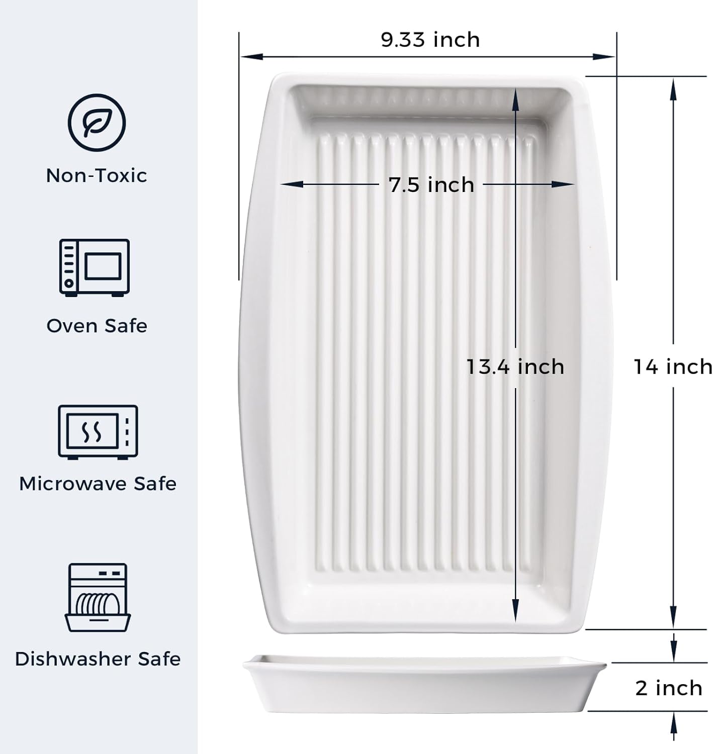 - 【Versatile & Practical】 Measuring 14"L × 9.33"W × 2"H (including handles), our generously sized ceramic baking dish is perfect for family dinners and serving. Its ideal dimensions accommodate a variety of dishes like lasagna, casseroles, roasted meats, bacon, and more.