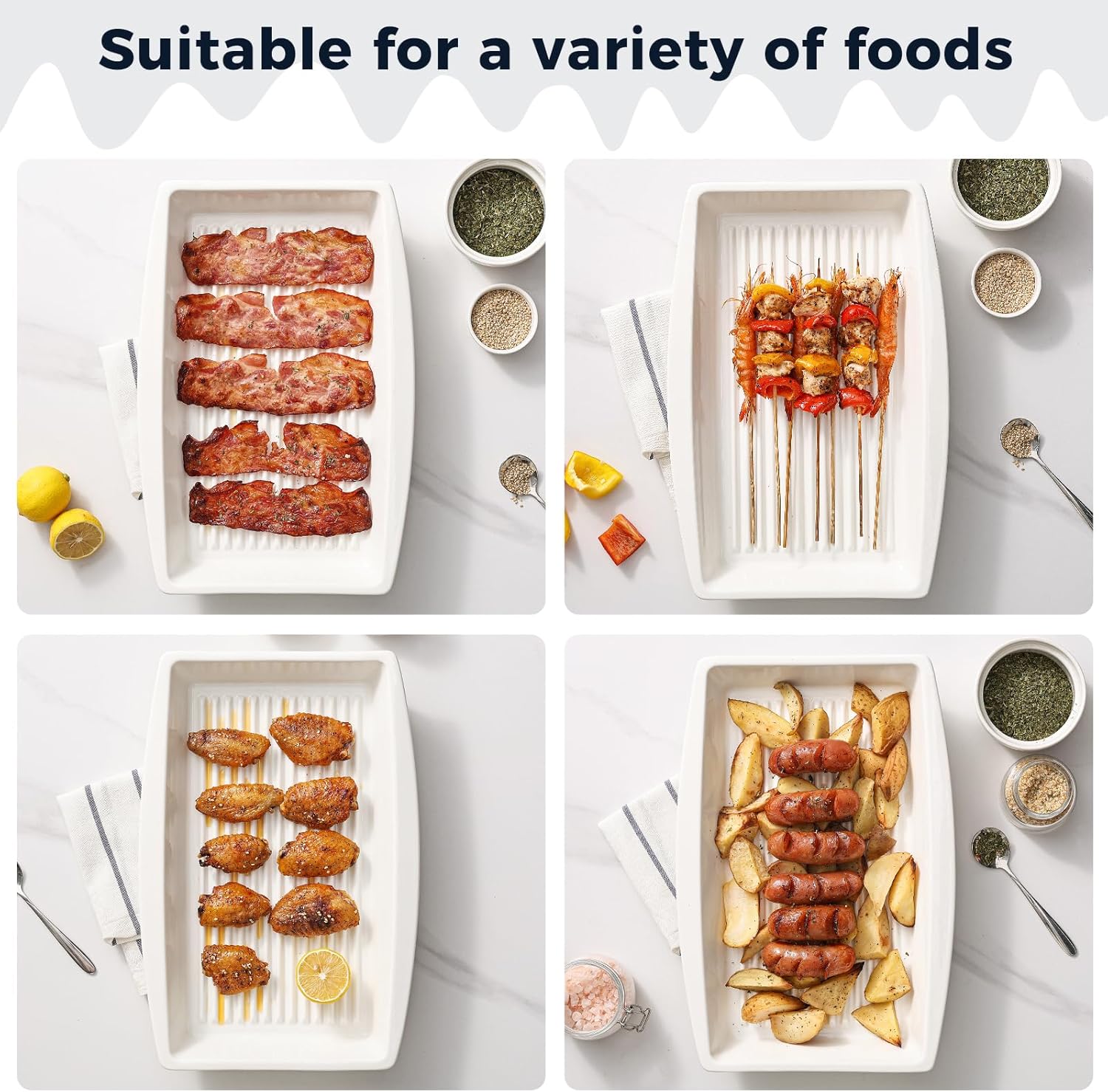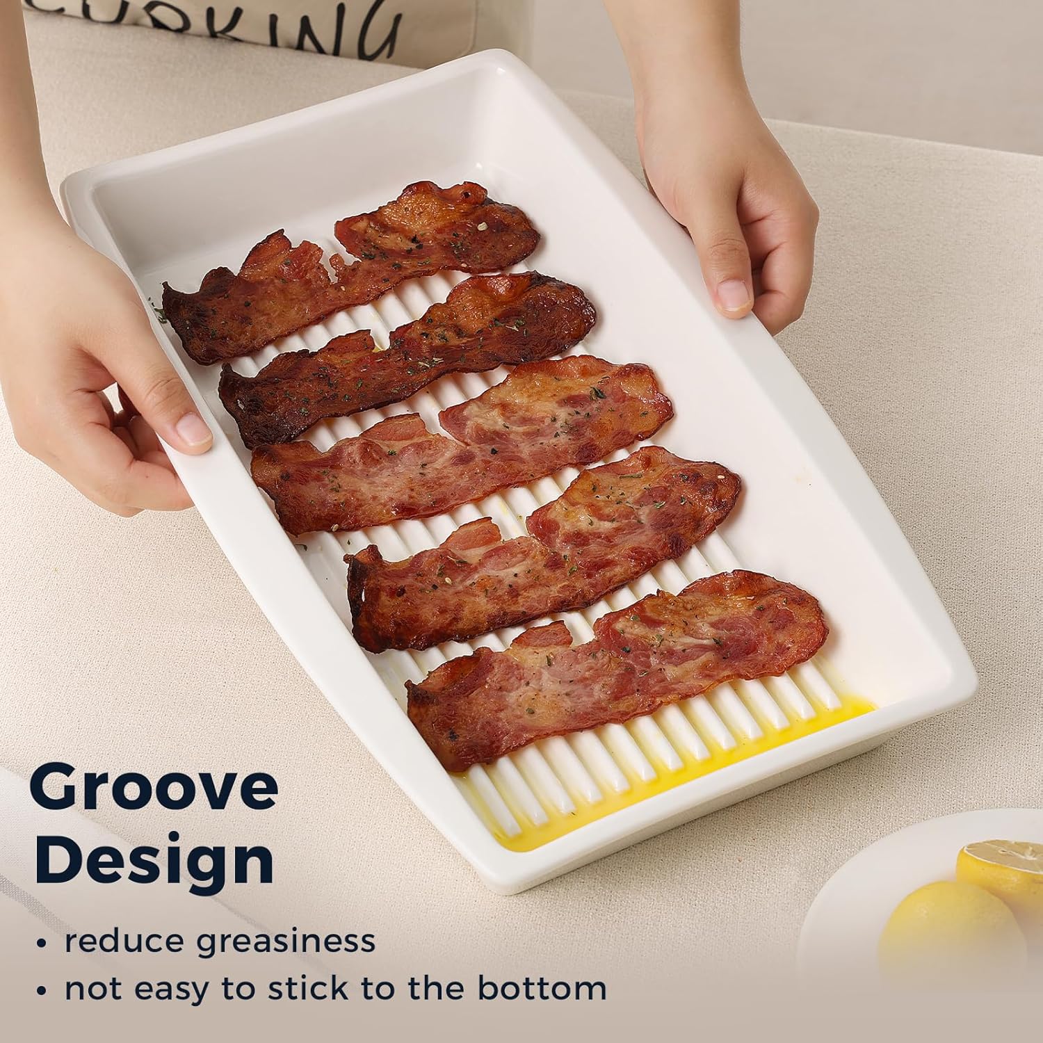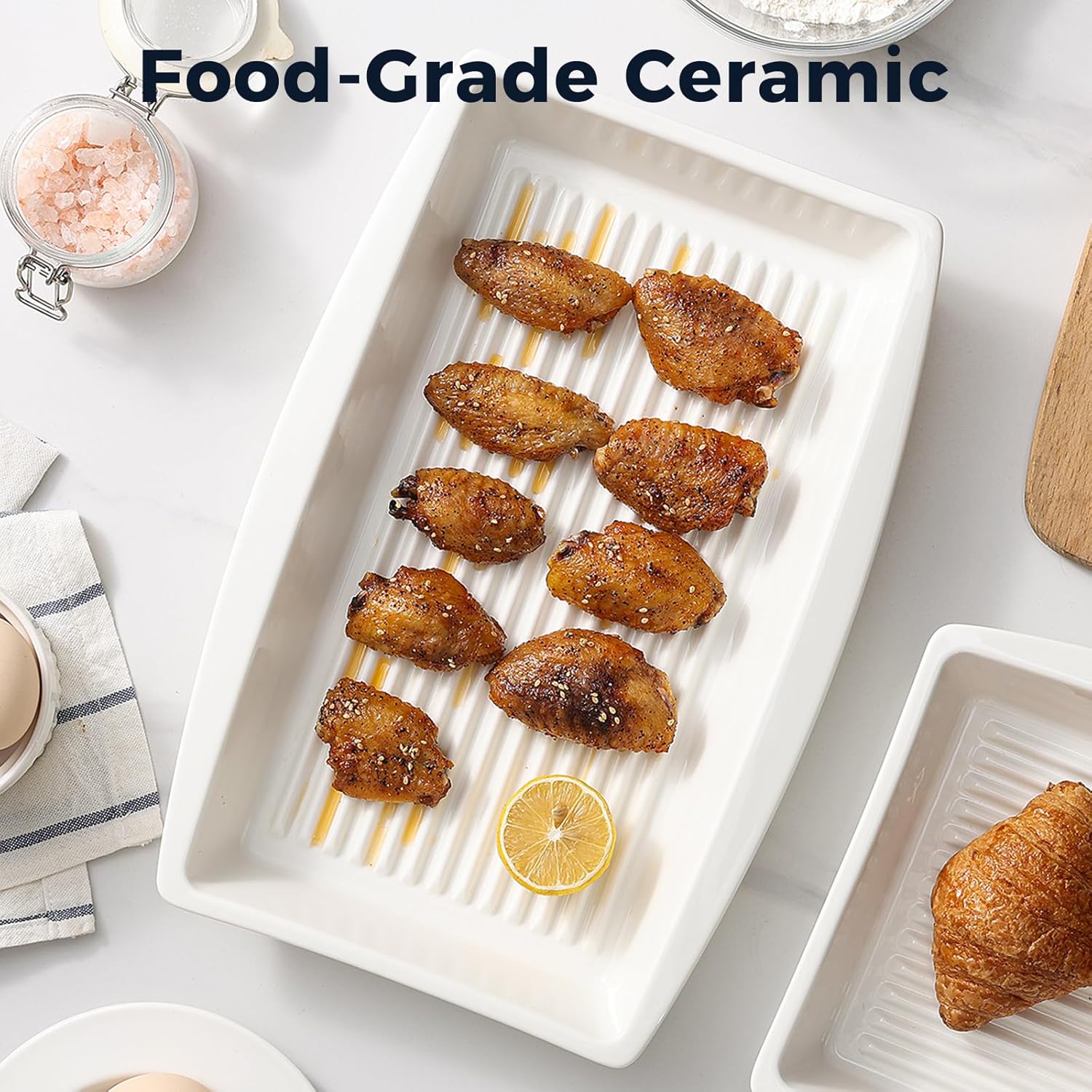 - 【Unique Groove Design】 Our ceramic baking dish features a unique groove design that helps reduce greasiness, allowing you to cook delicious, healthier, and crispier meals that release easily from the dish.