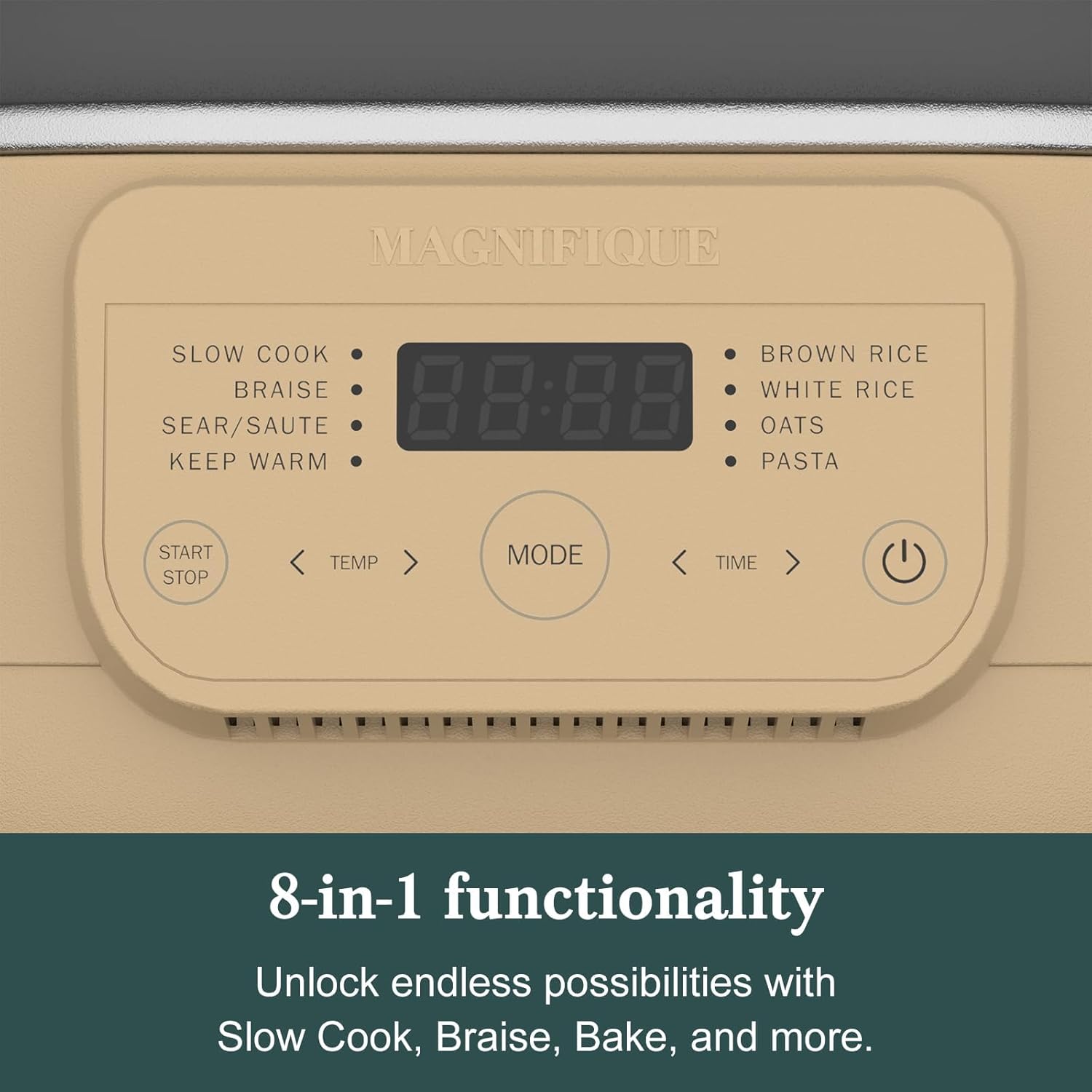 - 8 POWERFUL ONE-TOUCH PRESETS: Slow Cook, Braise, Sear/Sauté, Keep Warm, Brown Rice, White Rice, Oats, Pasta – get every meal covered with the touch of a button