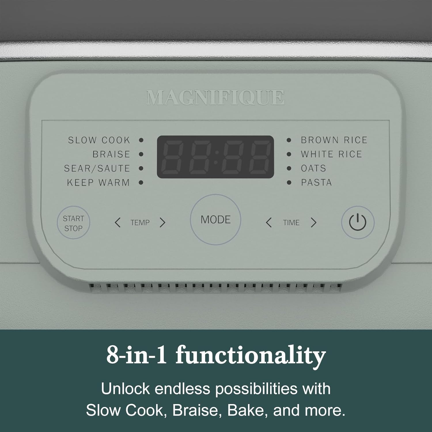 - 8 POWERFUL ONE-TOUCH PRESETS: Slow Cook, Braise, Sear/Sauté, Keep Warm, Brown Rice, White Rice, Oats, Pasta – get every meal covered with the touch of a button
