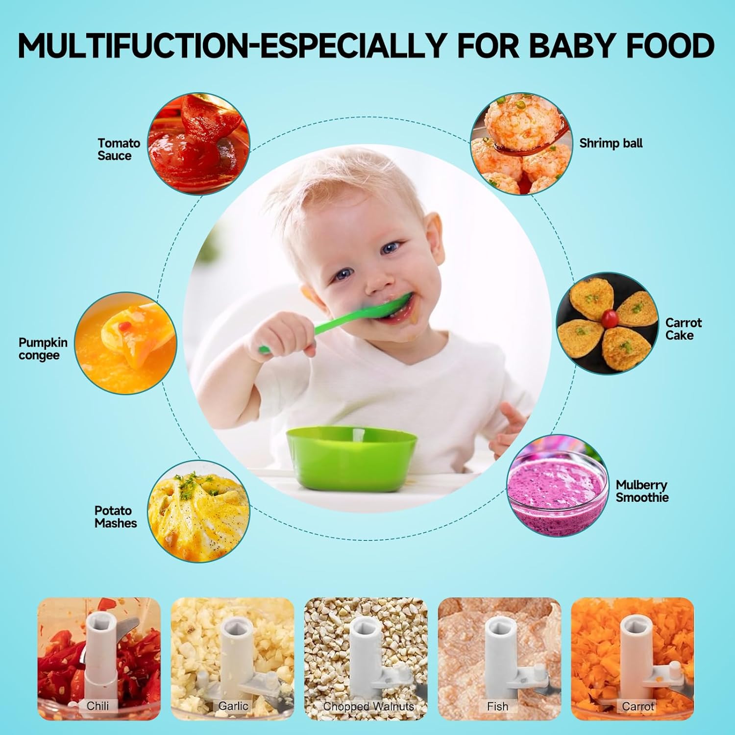 - Easy Clean & Waterproof: Our food chopper can be rinsed directly with water after use, the blender cup and blade are detachable, no stain residue, making cleaning and assemble are simply, fully clean after a flush, and ready for the next challenge.