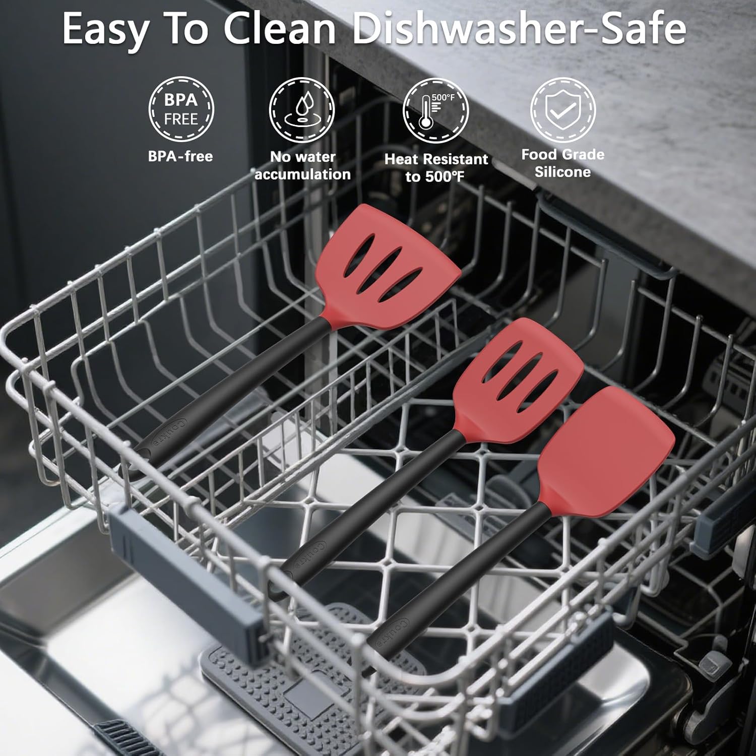 - [Easy to Clean & Dishwasher Safe]: The non-stick silicone surface makes cleanup a breeze, and all utensils are dishwasher-safe for added convenience. With top hanging holes and the included storage holder, organizing and storing your utensils is easier than ever