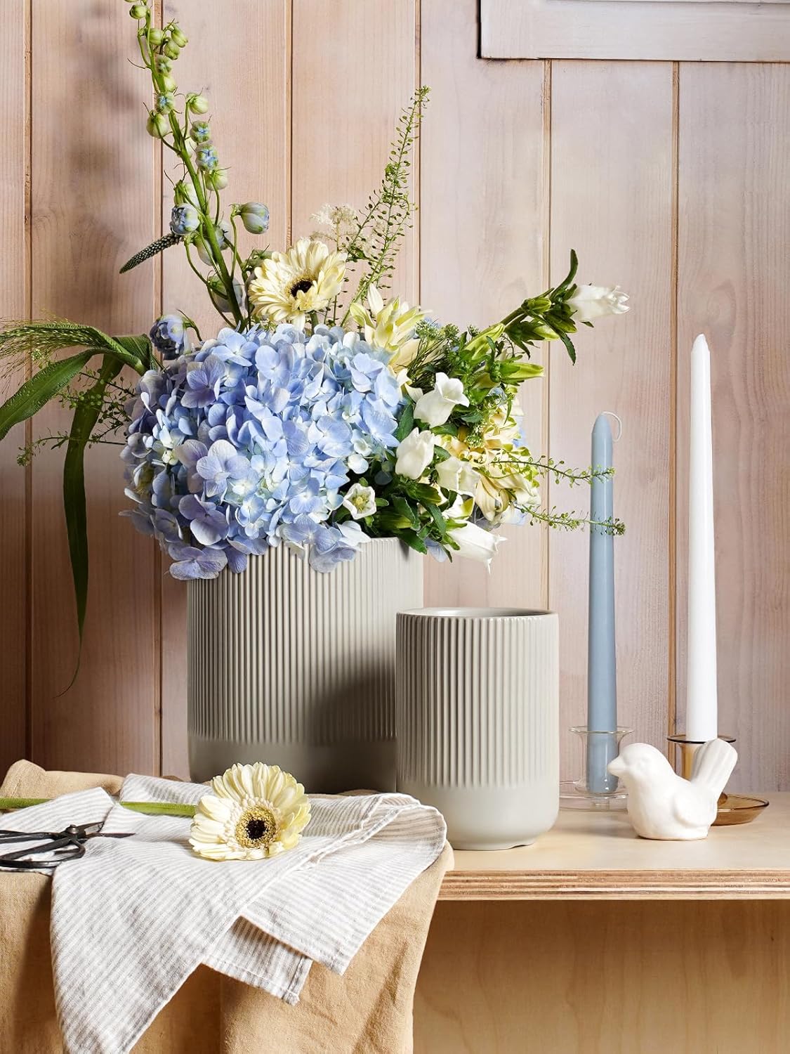 LE TAUCI Utensil Holder, 7.3"+5.4" Ceramic Kitchen Utensil Holder for Countertop, Large Cooking Utensil Crocks for Kitchen Counter, Morden Utensil Organizer for Spatula, Set of 2, Oatmeal Greige