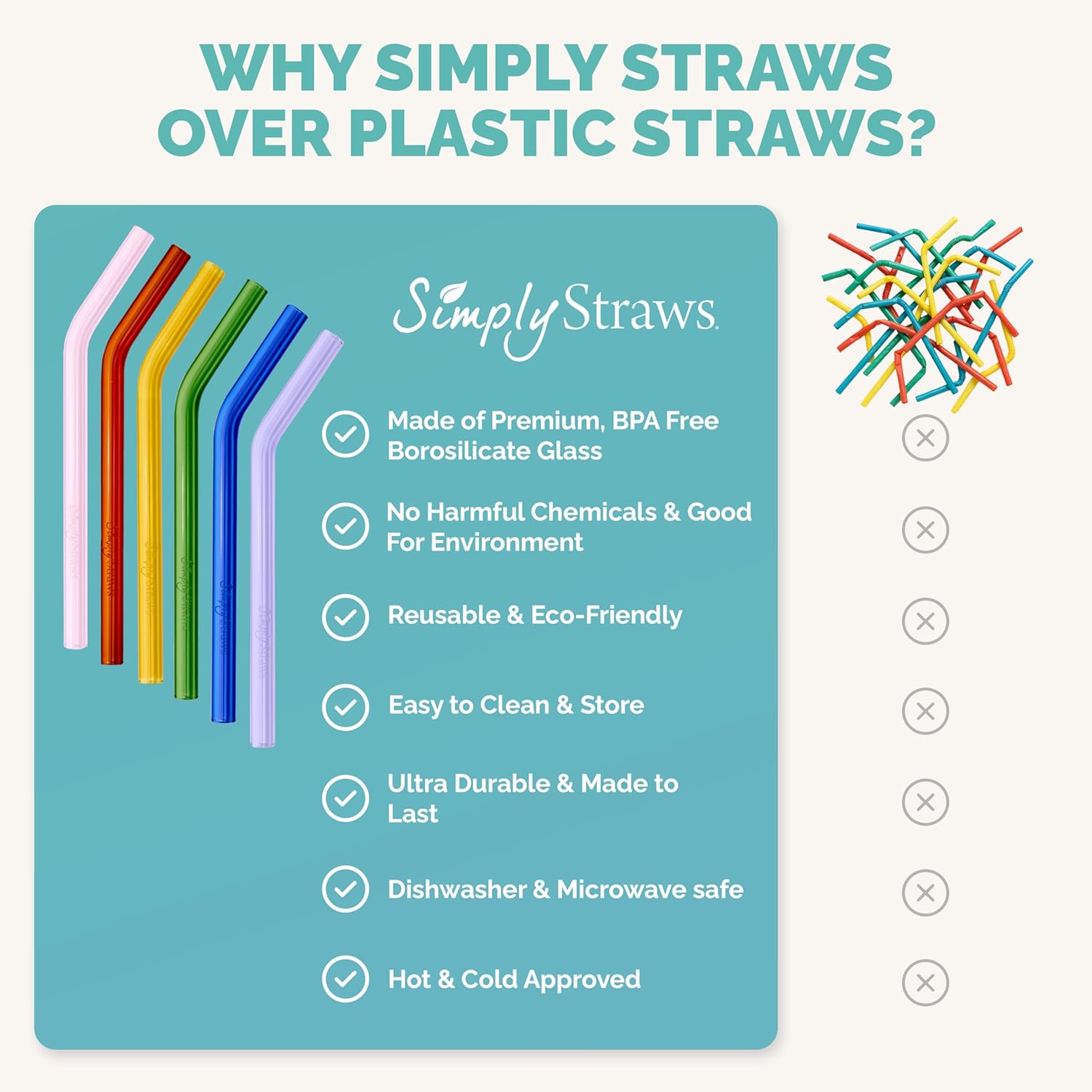 - Reusable, Rinseable: Cut down on waste with every sip with these reusable glass straws. Dishwasher-safe and includes a cleaning brush for when you want that extra-deep clean.