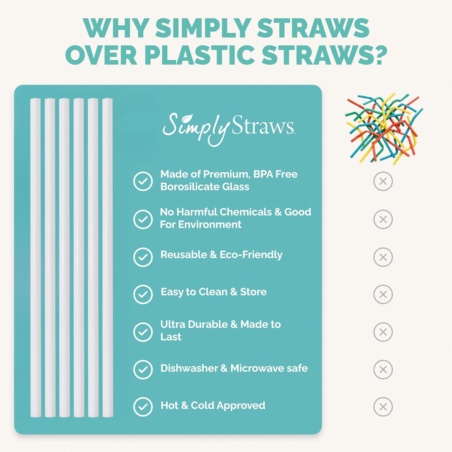 Simply Straws 12 Inch Glass Straws Straight (6-Pack) – Reusable Glass Straws for Stanley 40 Oz Tumbler, with Cleaning Brush – Durable, Dishwasher Safe, Hot & Cold Use, BPA-Free (Pearl)