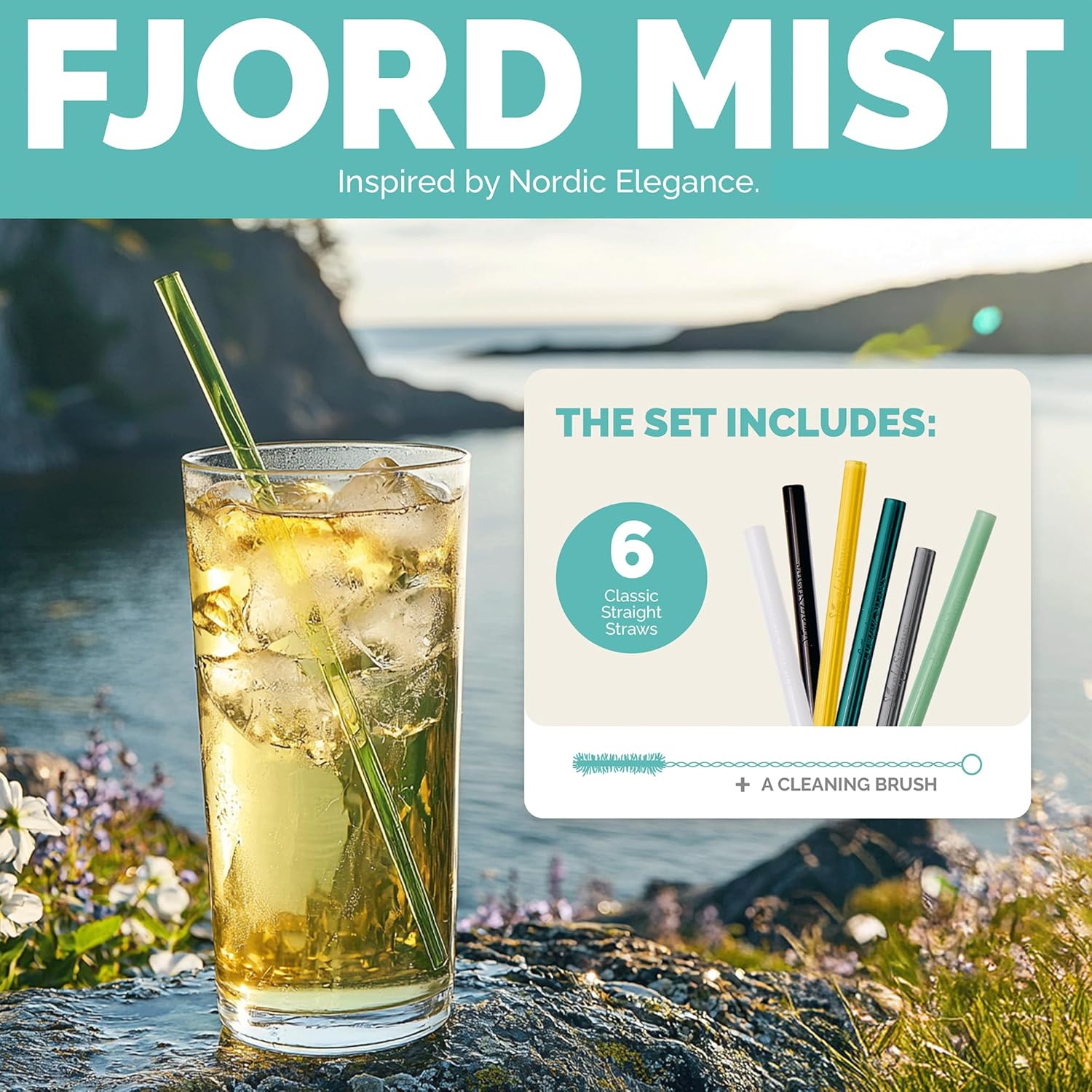 Simply Straws 10 Inch Glass Straws Straight (6-Pack) – Reusable Glass Straws for 24 Oz Mason Jars & Tumblers, with Cleaning Brush – Durable, Dishwasher Safe, Hot & Cold Use, BPA-Free (Fjord Mist)