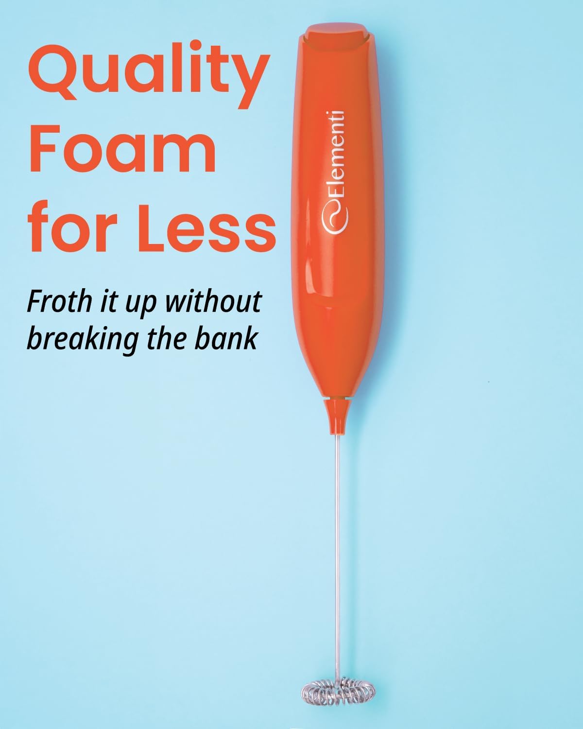 Elementi Powerful Frother Wand – Lightweight Milk Frother & Drink Mixer Handheld, Matcha Whisk for Dreamy Lattes, Powerful Coffee Mixer Wand & Stirrer - Make Creamy Cappuccinos at Home (Orange)
