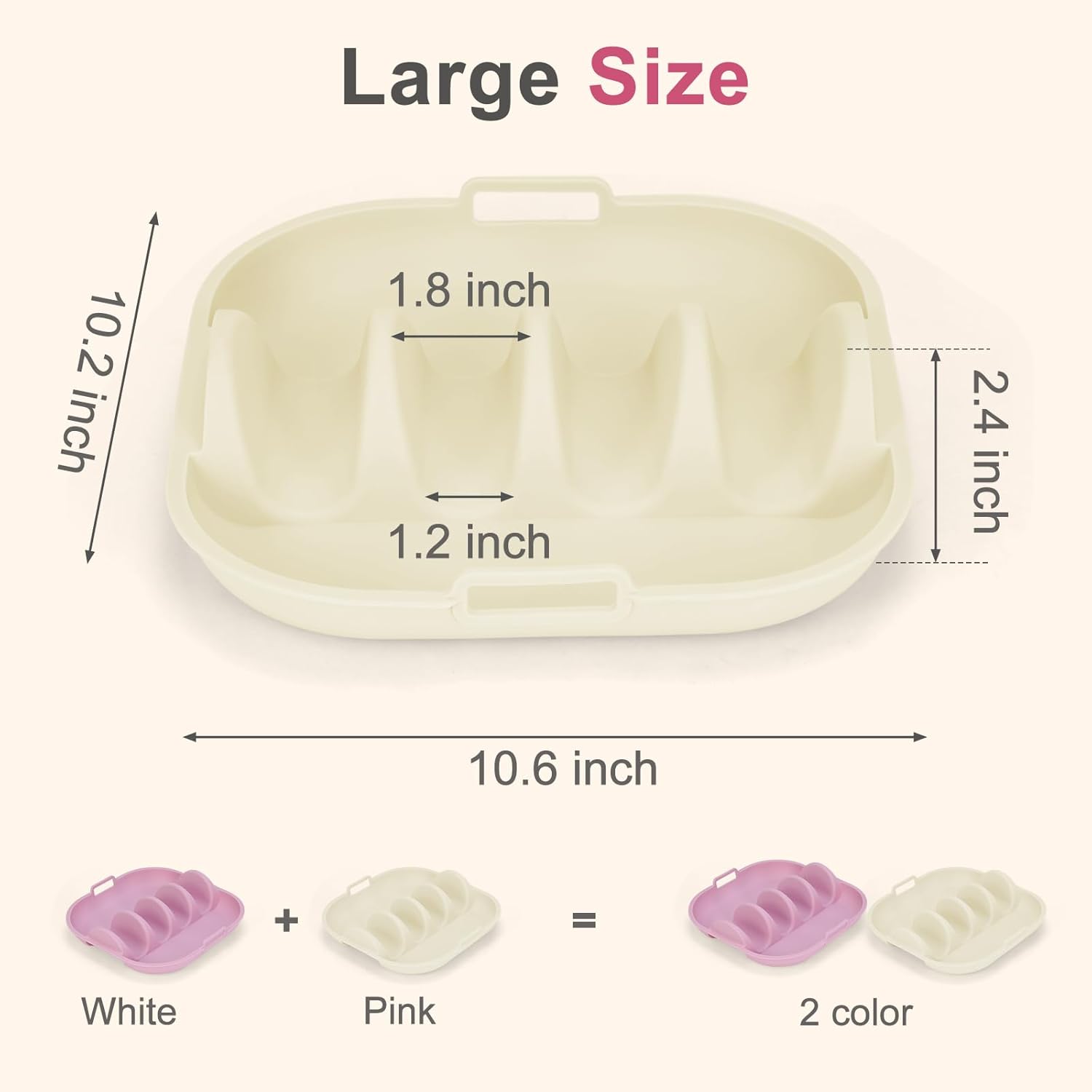 Silicone Taco Holder 2 Pack,10.2in Upgrade Reusable Taco Plates with Dividers,Fiesta Tacos Holder Tray.Taco Serving Plates, Dishwasher & Microwave Safe(2, WHITE+PINK)