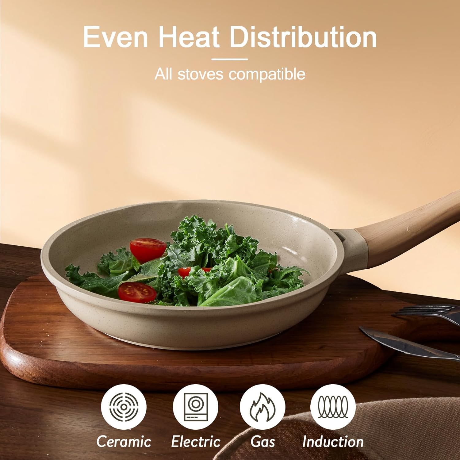 - 【Ti-Ceramic Coating Ultra Non-Stick & Non-Toxic】Engineered with a next-generation ceramic coating enhanced by titanium powder, this non toxic cookware set offers long-lasting nonstick performance and superior scratch resistance. 100% free from PFAS and other harmful chemicals—cook healthy with confidence.
