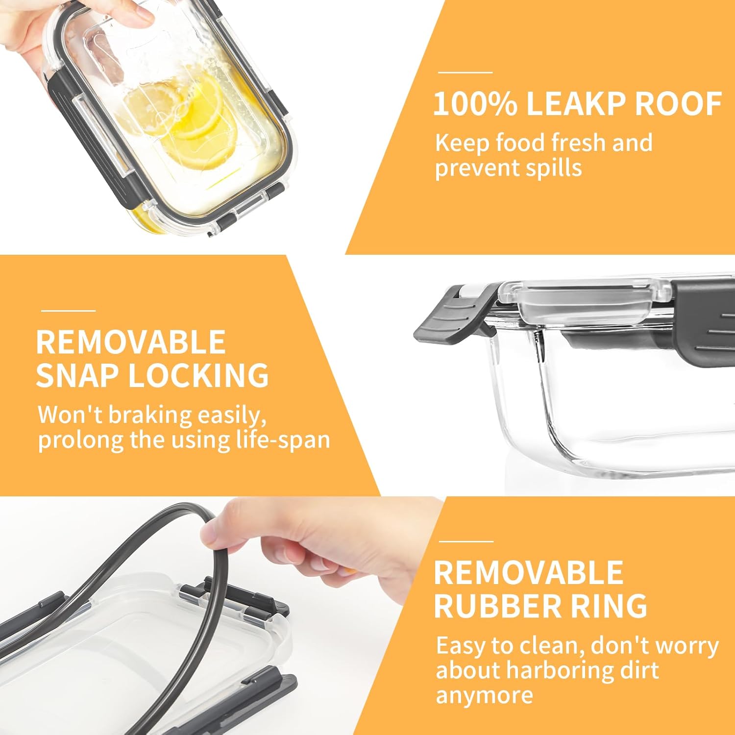 - Airtight & Leak Proof: These pantry organizers and storage are designed with removable silicone seals and Upgraded Snap Locking Lids to create an airtight and leak-proof barrier, ensuring your food stays fresh and spill-free. And glass food containers with reliable seal also prevents any odors from escaping