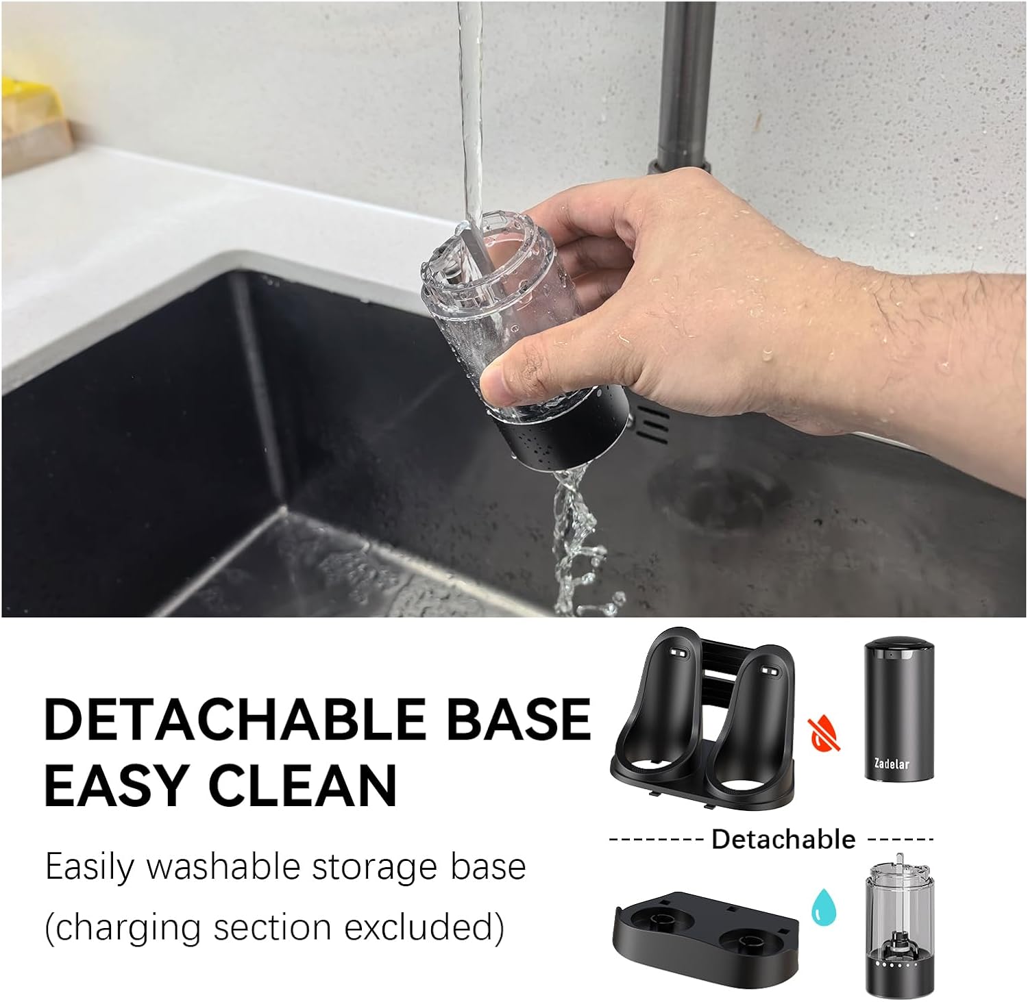 - Easy Cleaning:The removable base of the Zadelar automatic salt and pepper grinder allows for deep cleaning to prevent spice buildup and ensure peak performance.Ideal for the dining table, the kitchen, or as a kitchen gadget gift for home cooks and picnic enthusiasts alike