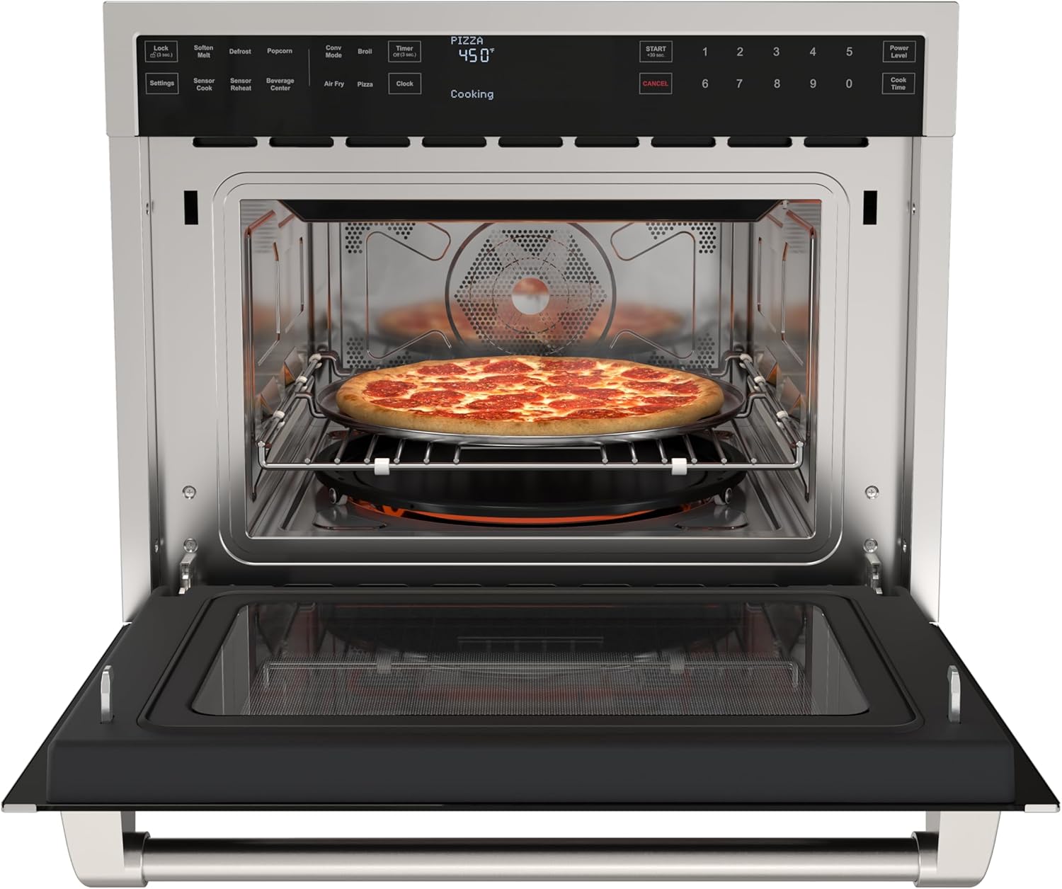 - Versatile 3-in-1 Cooking Technology: This appliance functions as a microwave, convection oven, and air fryer, allowing you to bake, broil, roast, crisp, and reheat with one appliance. It offers a wide temperature range of 175°F to 450°F for precision cooking.