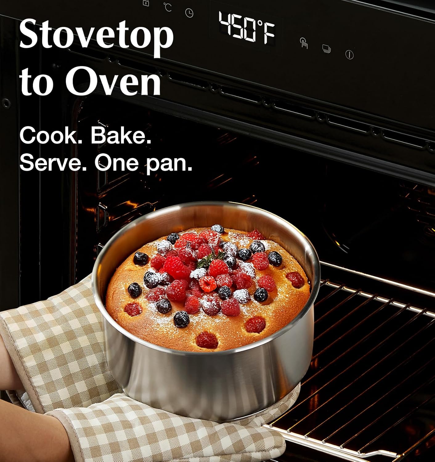 - Ultimate Convenience: The stainless steel sauce pan set with detachable handles offers unmatched flexibility, moving from stove to oven, grill, fridge, and table in a click. Perfect for outdoor cooking, the portable design makes it easy to enjoy delicious meals anytime, anywhere.