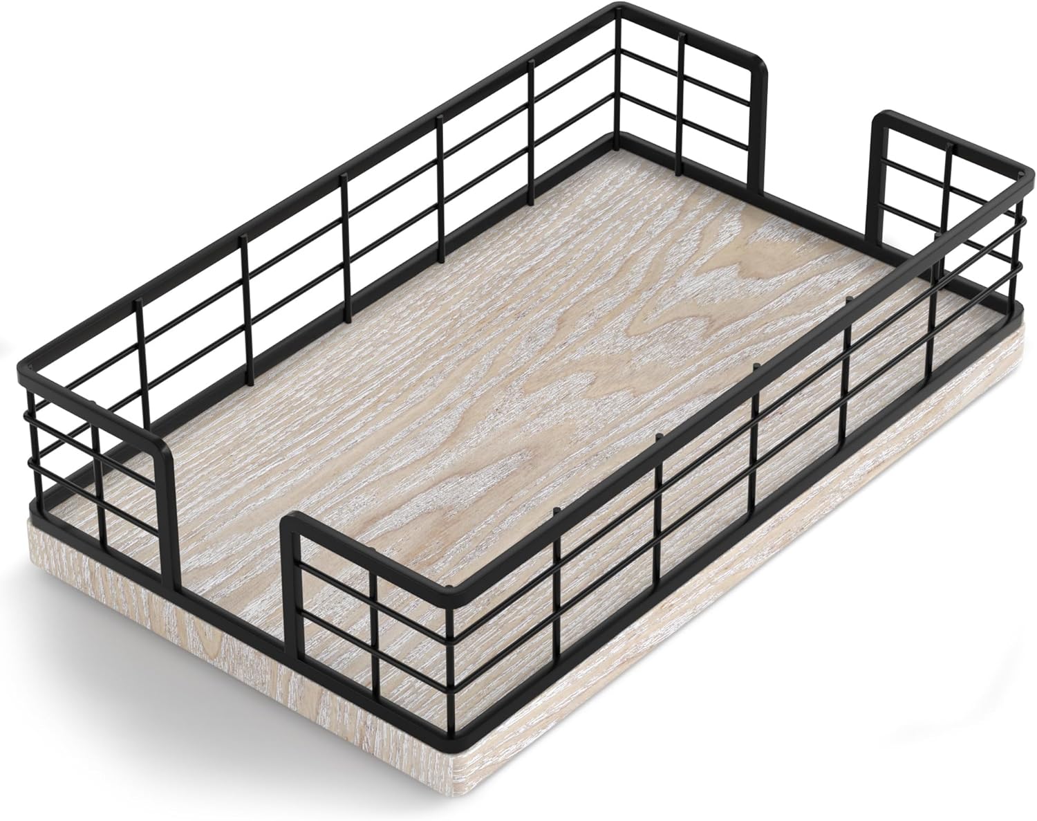 Wican Guest Towel Holder Tray for Bathroom, Ash and Iron Napkins Holder for Powder Room Dinning Table Wooden Basket for Disposable Paper Hand Towels Black and Ash