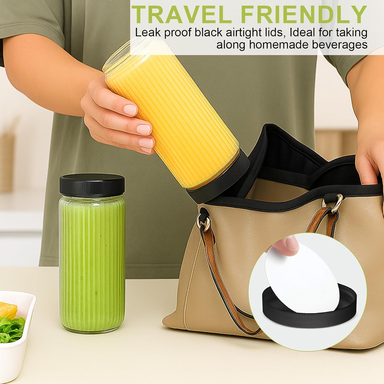 - Airtight and Leakproof Design:Each bottle comes with a secure lid,ensuring that your juices stay fresh and protected.The foam-lined lids create an airtight seal,making these bottles for juicing ideal for travel without worrying about spills.Enjoy your drinks worry-free,whether at home or on the move!