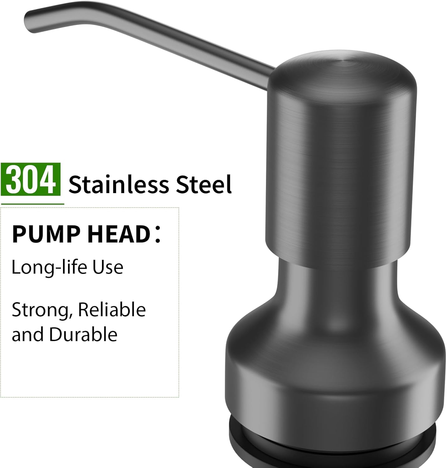 - Premium Material:This sink soap dispenser for kitchen sink is made of durable 304 stainless steel and PE plastic. This soap dispenser pump head possesses long-lasting performance and can survive over 50,000 press tests. Not only waterproof, and is perfect for damp environments.