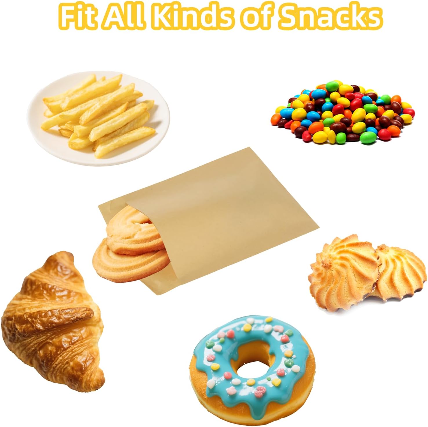 - GREASE AND WATERPROOF - Greaseproof Bag are made of natural kraft paper and coated with food-grade PP film, which is strong and not easy to tear. No more worrying about grease seeping through the bag and onto your clothes