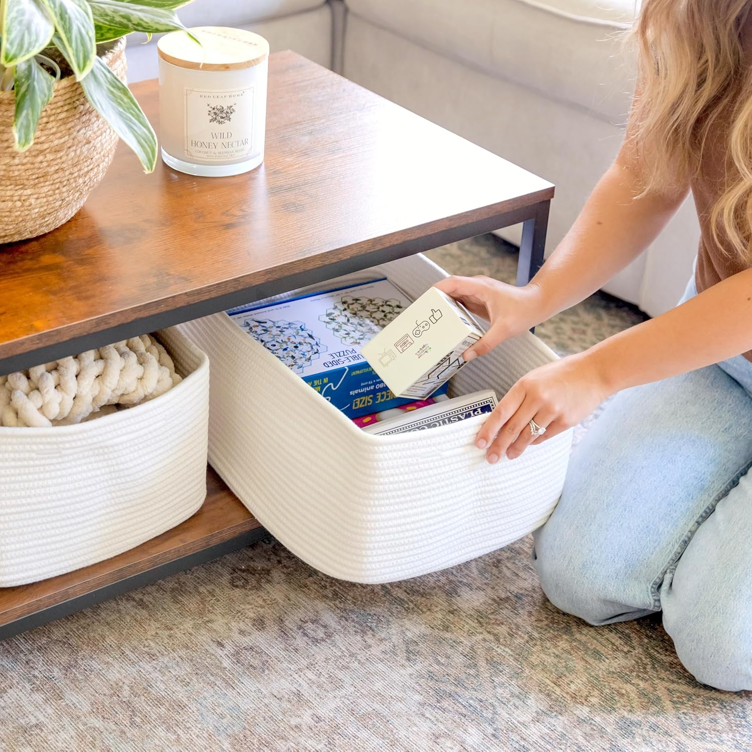 - Reinforced Hidden Handles: Sleek, strong, and out of sight! Our hidden handles are double-stitched for durability and blend perfectly into the basket’s design—making lifting easy without ruining the clean, minimal look of your home storage.