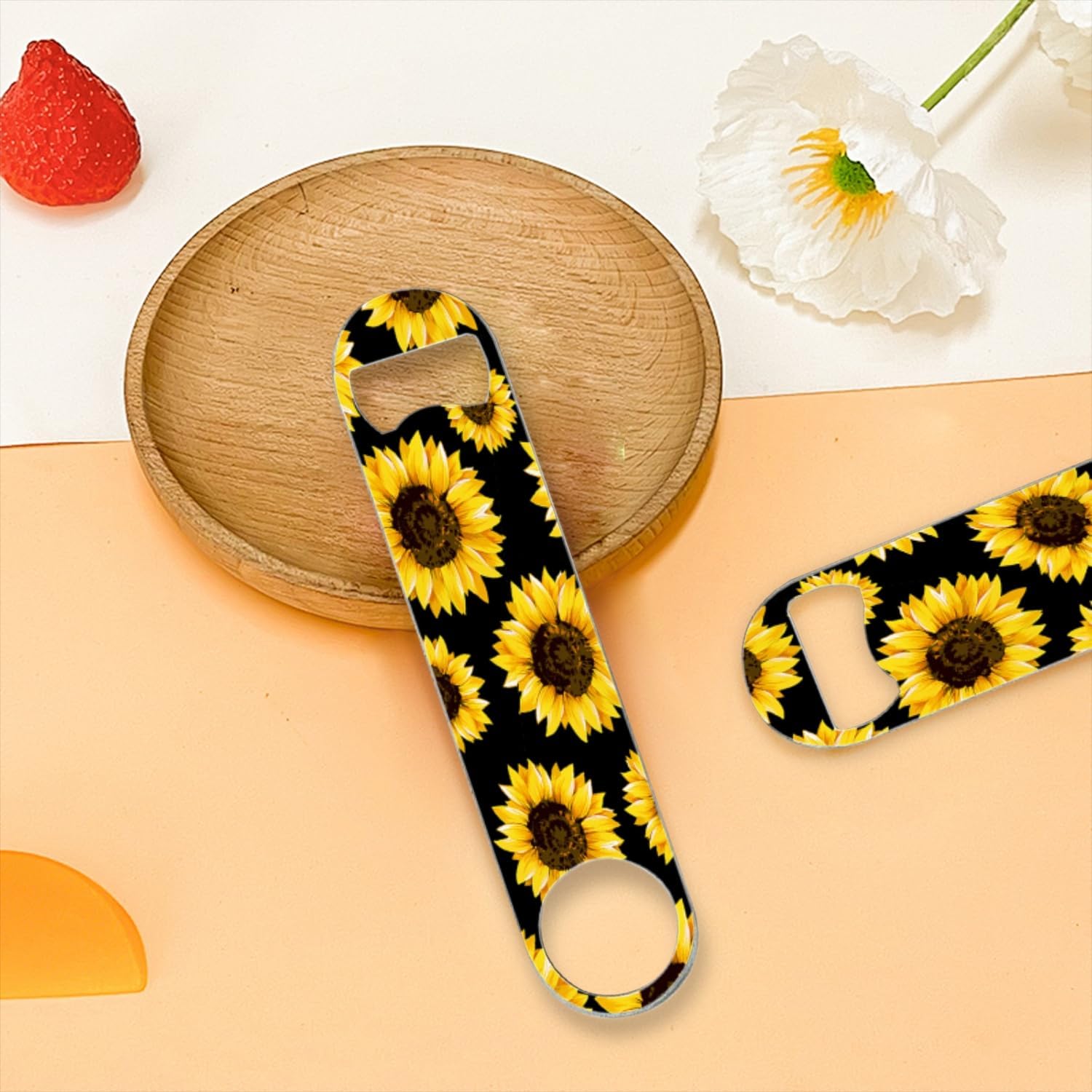 2 PACK Beer Bottle Opener, Stainless Steel Flat Bottle Openers,7 inch Metal Decor,Sunflowers On Black Background