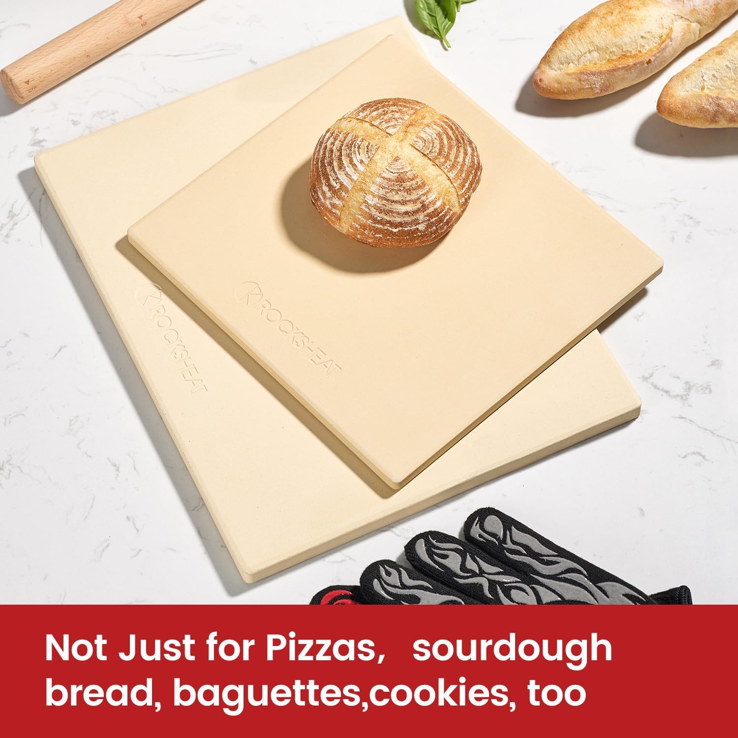 - Not just for pizzas, this large pizza stone is a versatile addition to your kitchen. Use it to bake multiple loaves of bread, baguettes, pies, and cookies, allowing you to explore a wide range of baking possibilities.