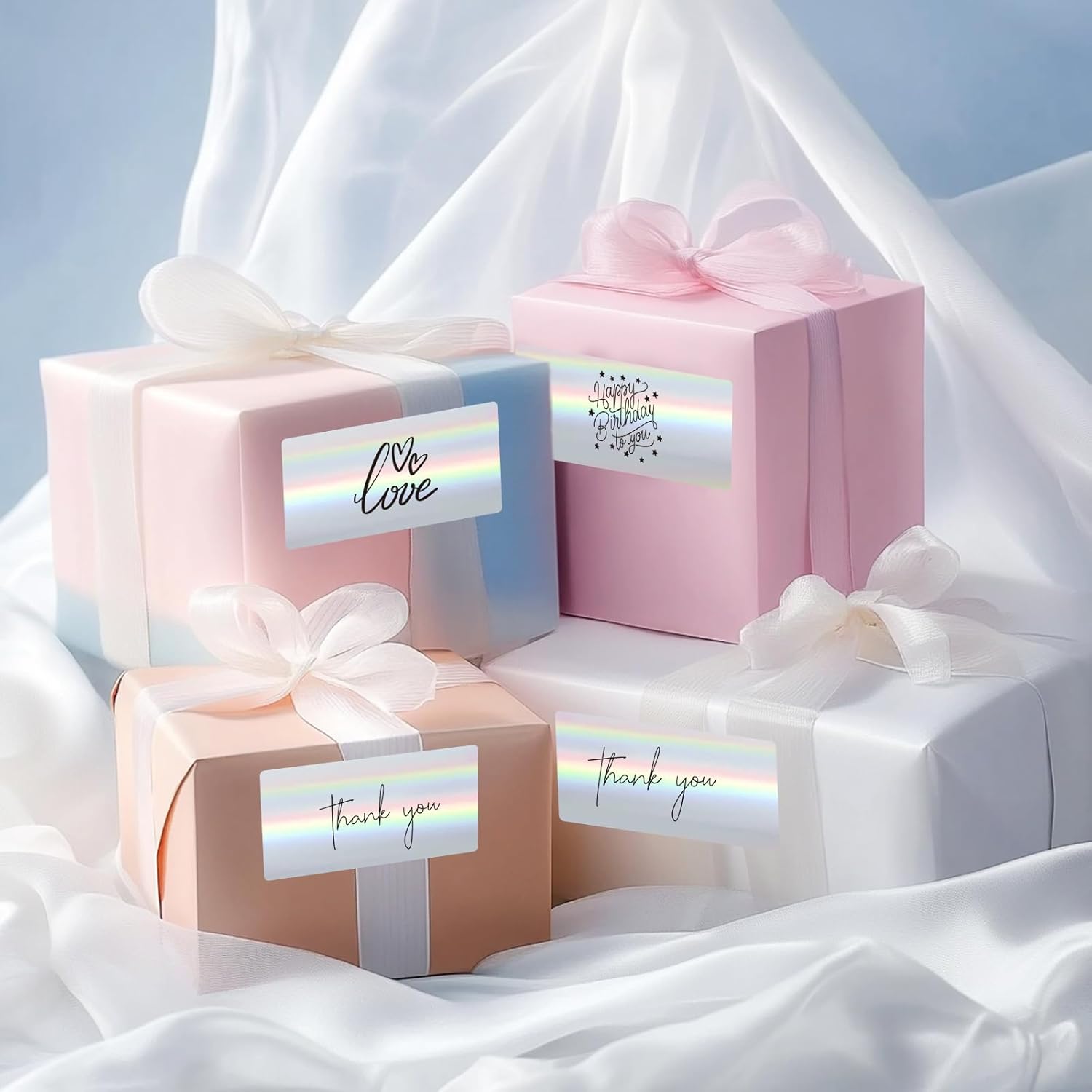- Holographic Thermal Sticker Labels: Printed on rainbow metallic vinyl, the color of the surface of the sticker can be changed under the light with the move, which is beautiful and charming! Our holographic stickers offer an amazing visual experience like and leave a remarkable impression