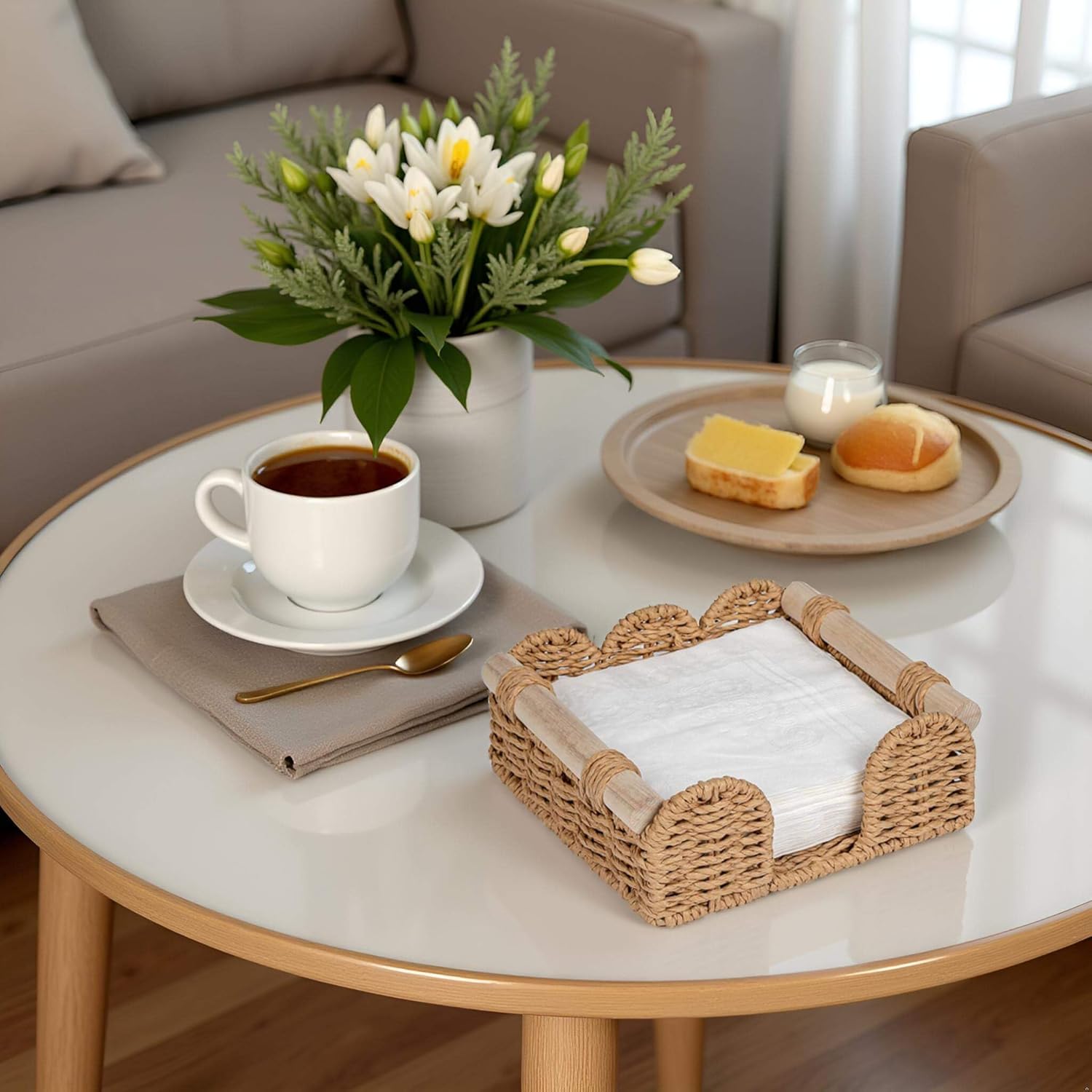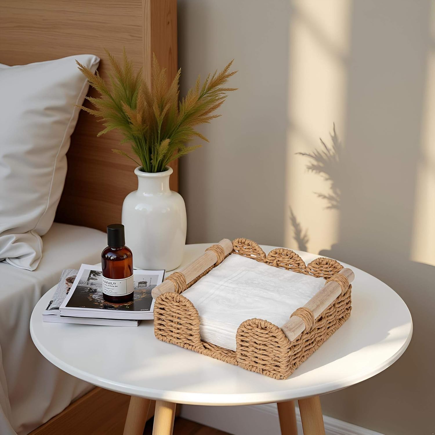 - Handwoven with Premium Paper Rope - Each napkin holder is hand-woven from paper rope and is chemical-free. Biodegradable and eco-friendly material, durable. Natural texture, perfect for home decor.