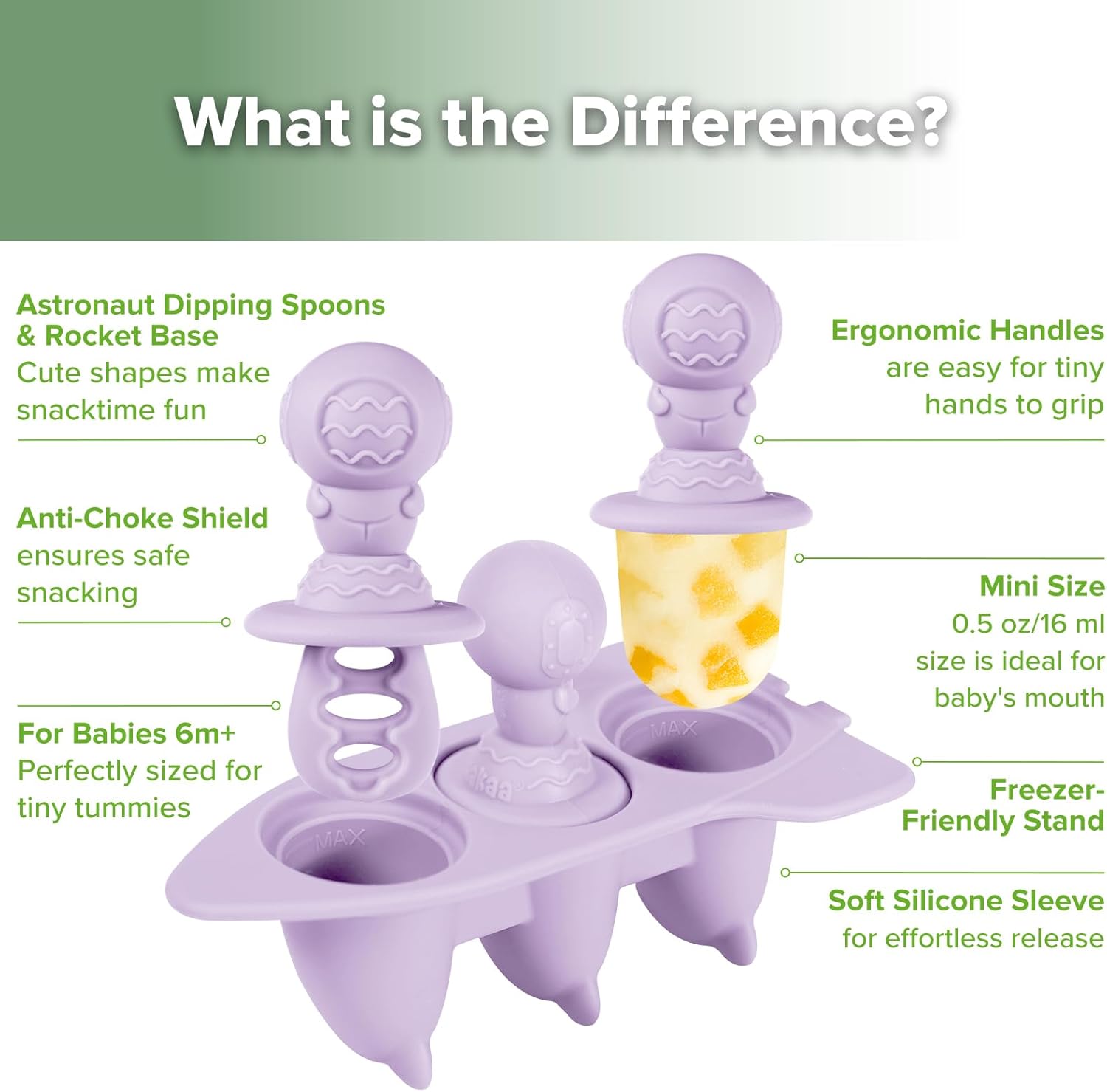 - ππππ-πππππ, ππππ-ππππ ππππππ ππππππ:These silicone popsicle molds feature a specially designed anti-choke stopper and easy-grip astronaut handle tailored for small hands. Prevents the stick from slipping in too far, giving moms peace of mind during snack time.