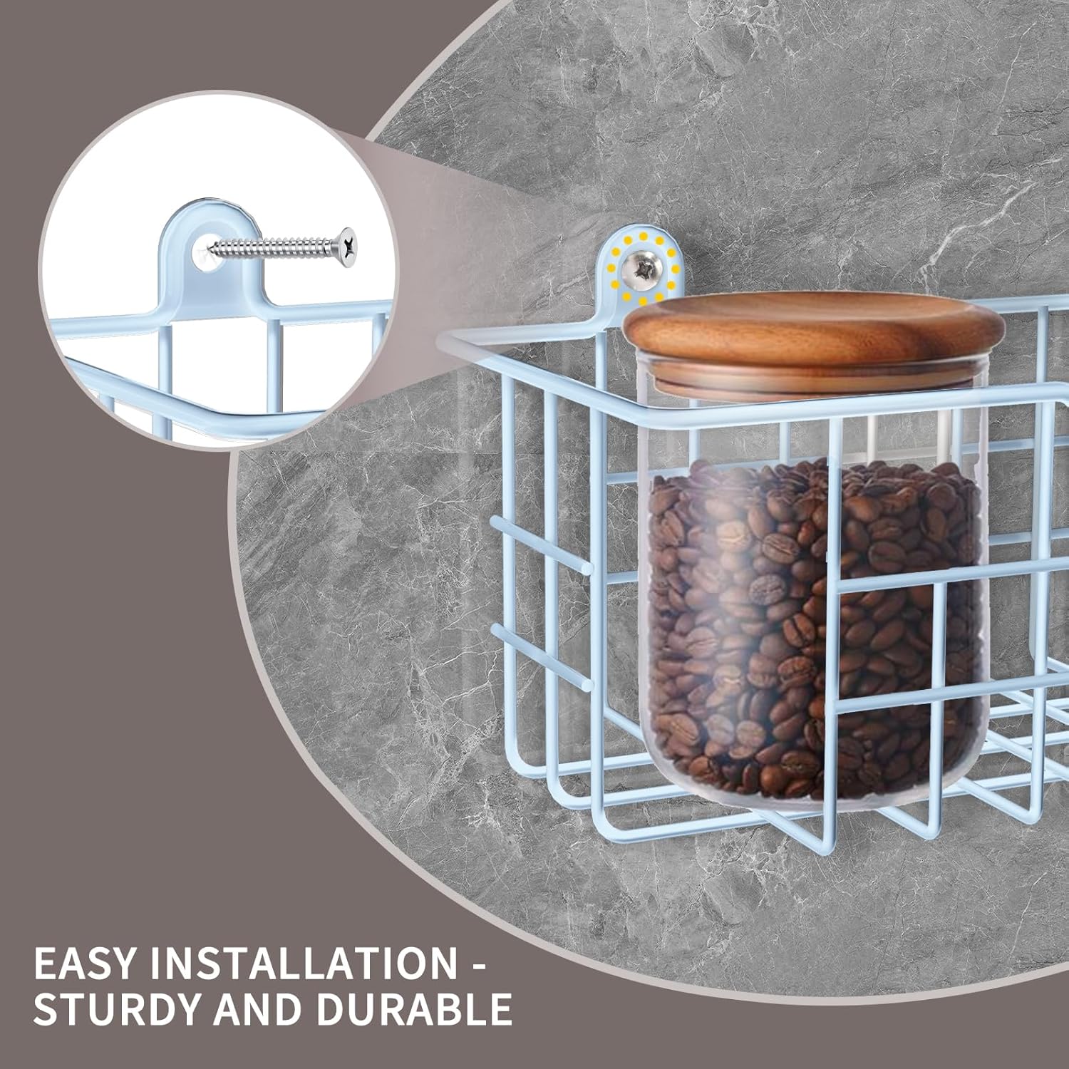 Spice Rack Wall Mount, 4-Pack Seasoning Organizer for Kitchen Storage Organization, Metal Spice Holder Saving Space Shelf for Cabinet, RV, Pantry, Blue