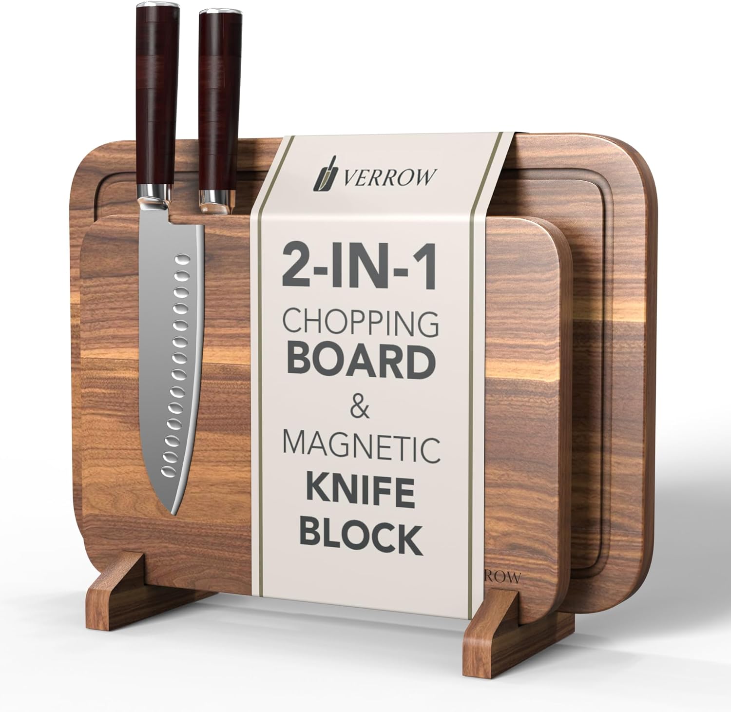 - 🔹 The Perfect Combo for Your Kitchen: Whether a professional chef or you simply enjoy surprising your family and friends with delicious, home-cooked meals, these wood cutting boards for kitchen with magnetic knife block will make your cooking process easier, adding a stylish touch to your modern kitchen! Knifes not included.