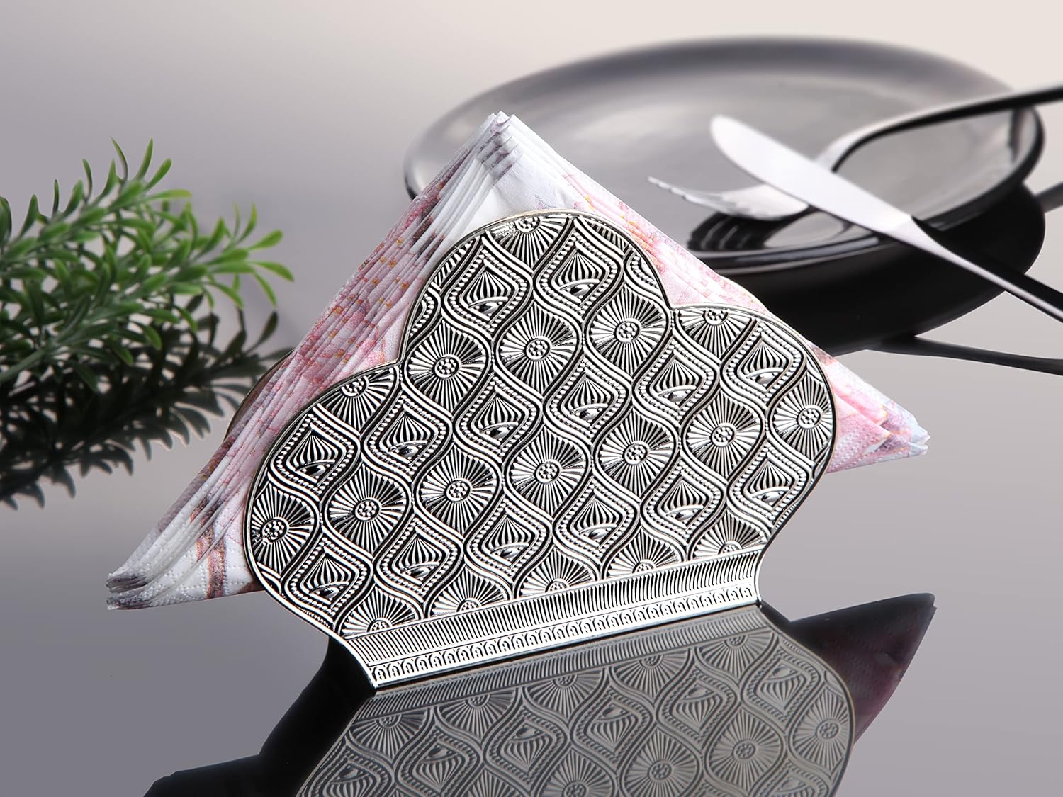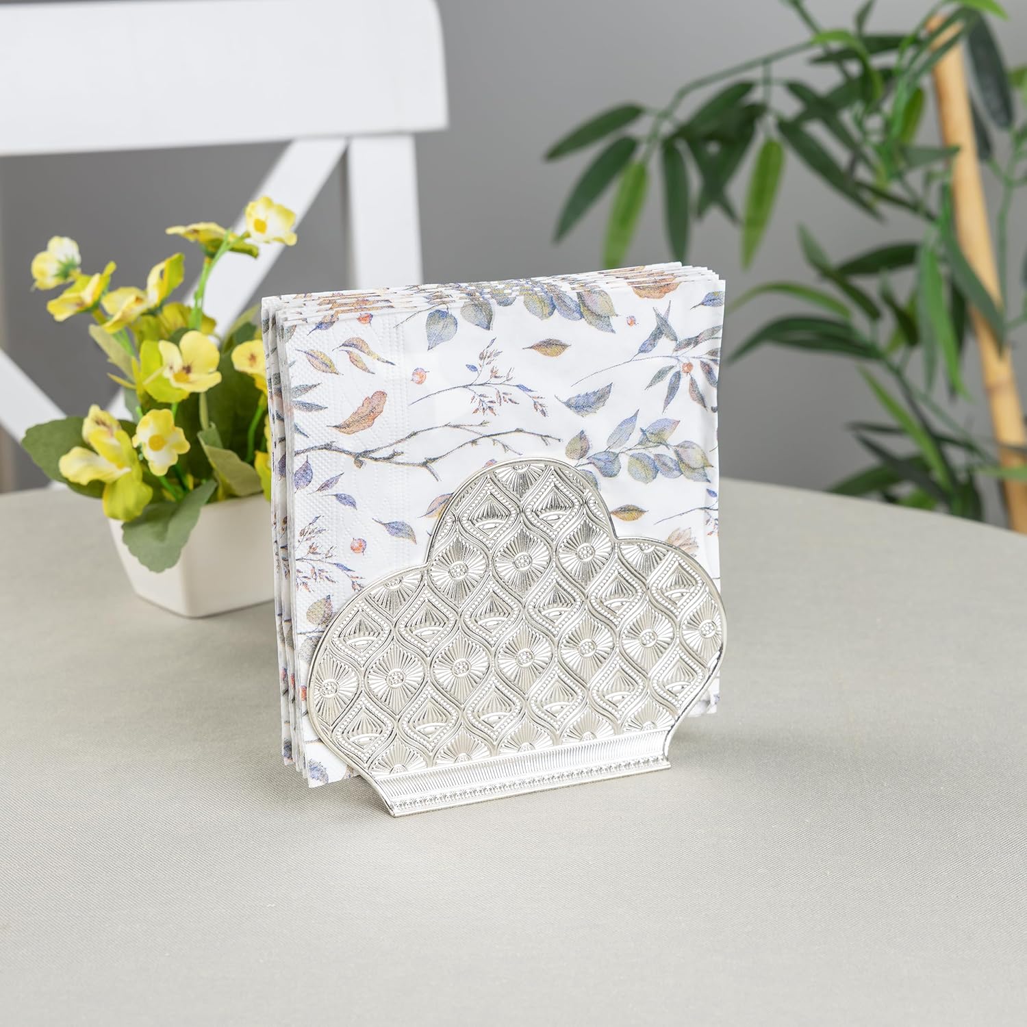 Alisveristime Zamac Napkin Holder – Decorative Elegant Metal Napkin Organizer for Table or Countertop Use (Silver)