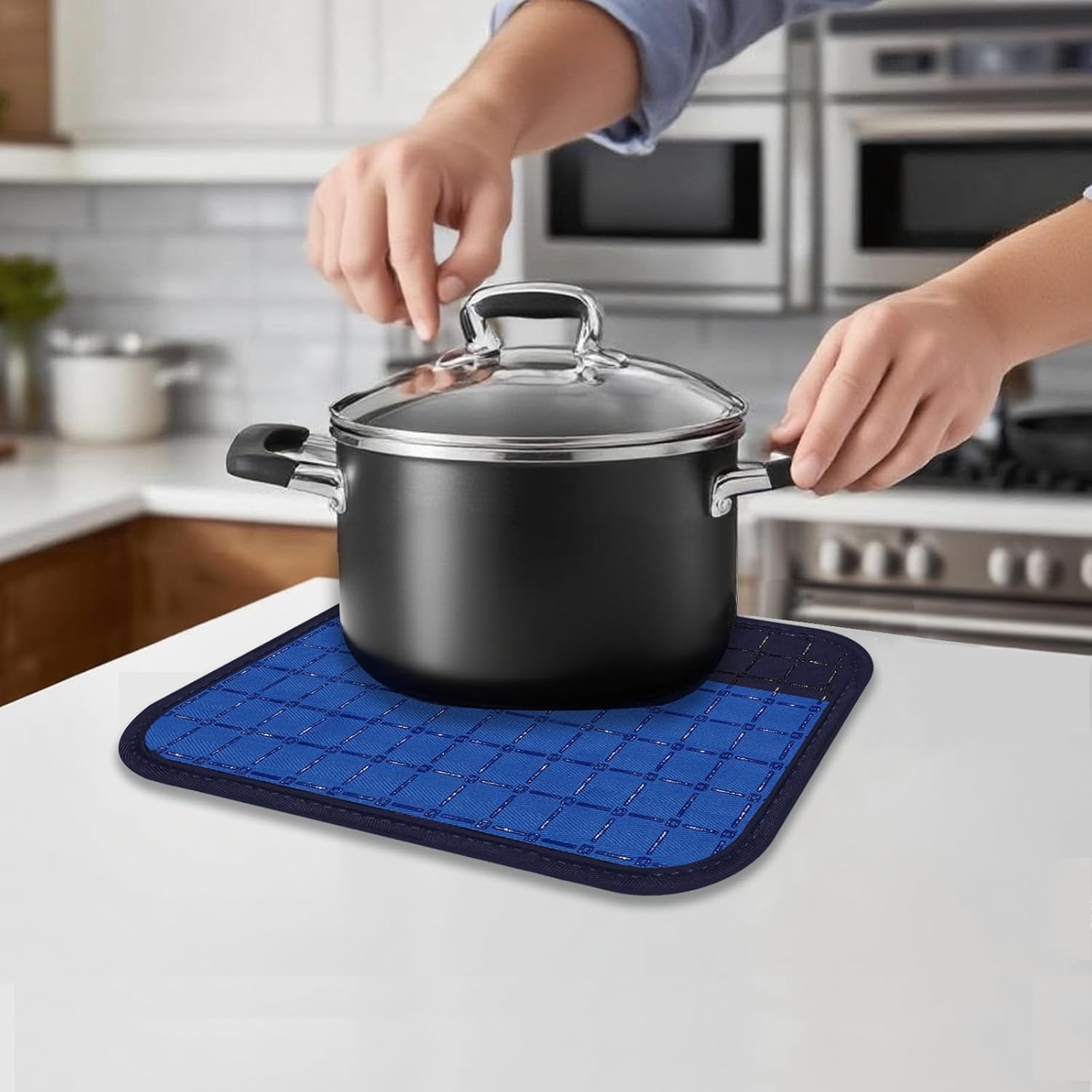 - PREMIUM MATERIAL POT HOLDERS AND OVEN MITTS : Our oven mitts and holders sets are made of soft quilted cotton lining to bring you comfortable and breathable touch and protect your skin as well. The cooking mitts are quite easy to clean and reserve, suitable for machine washing and hand washing