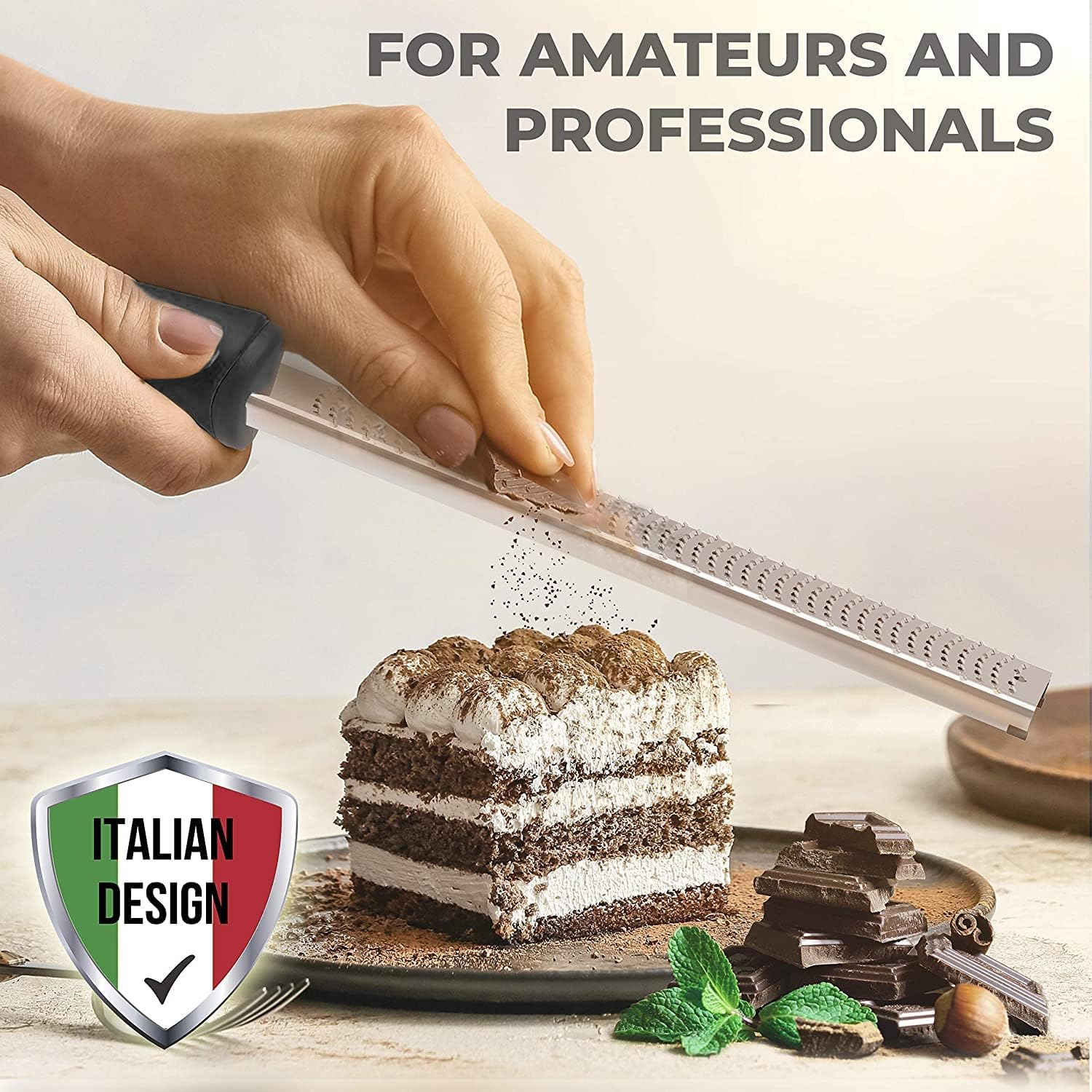 - ZESTER - Add extra flavor to your dish. This zester grater with handle comes with a razor-sharp blade that allows you to easily zest and grate lemons, cheese, ginger, fruits, spices, and vegetables.