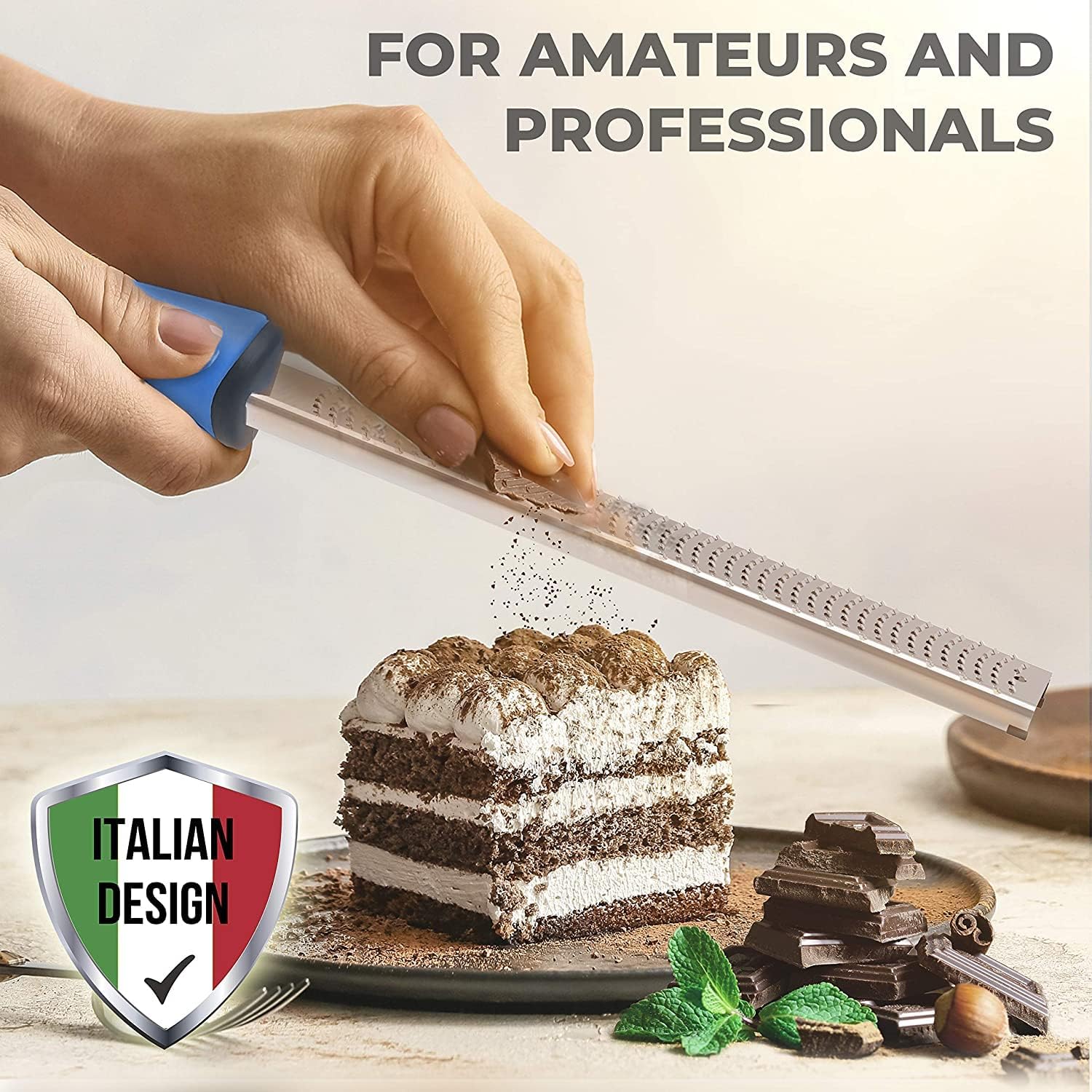 Stainless Steel Cheese Grater & Lemon Zester w/Extra Sharp Blade - Perfect for Lemon, Parmesan, Garlic, Chocolate - Spice Up any Dish in Seconds w/Your Premium Citrus Hand Grater with Handle - Blue