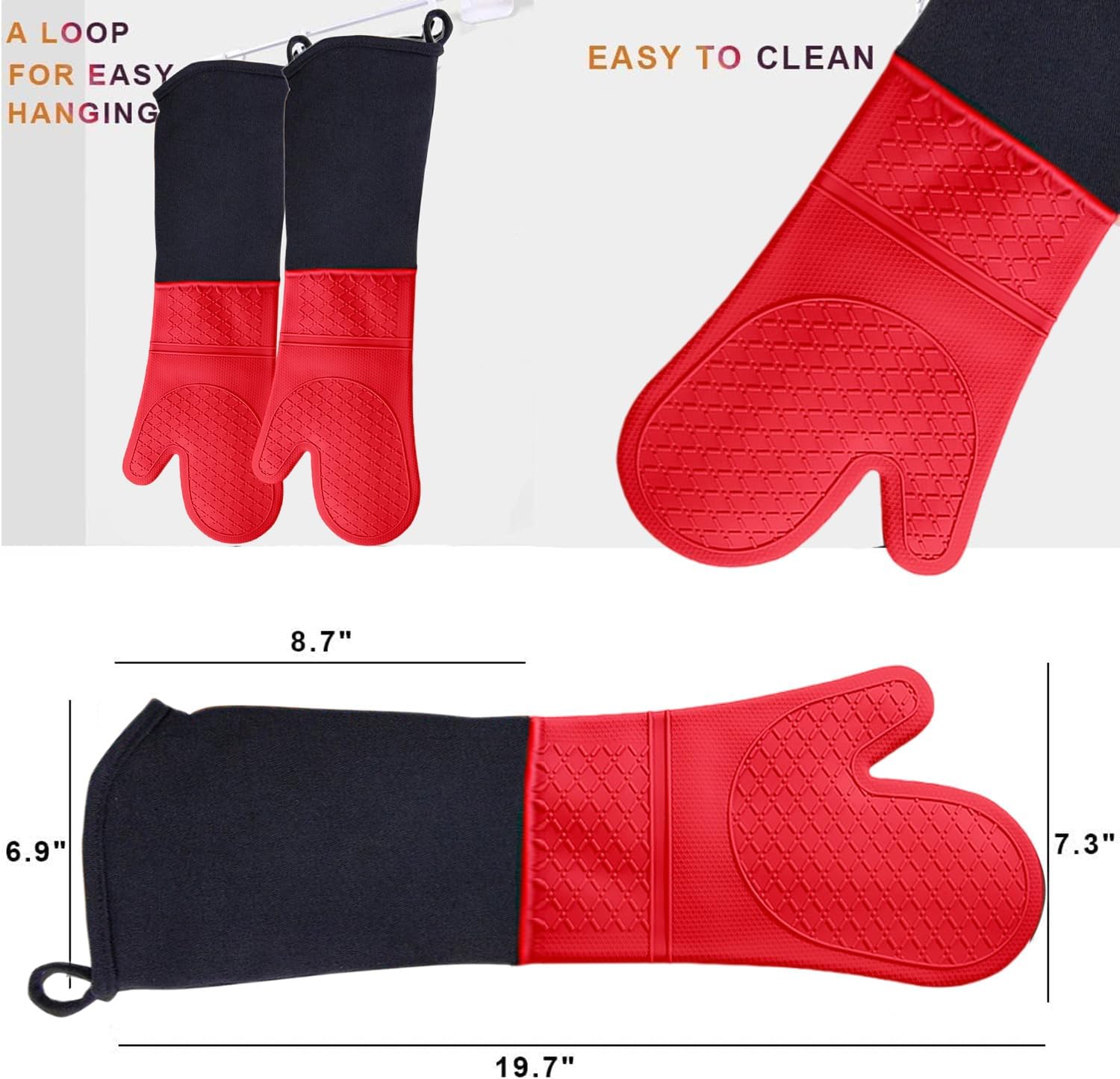 - Extra Long Design: 19.5" x 7.4", extra long sleeve, providing heat protection of forearms up to elbows,easy to clean and machine washable,a must-have tool/everyday essentials in every kitchen.