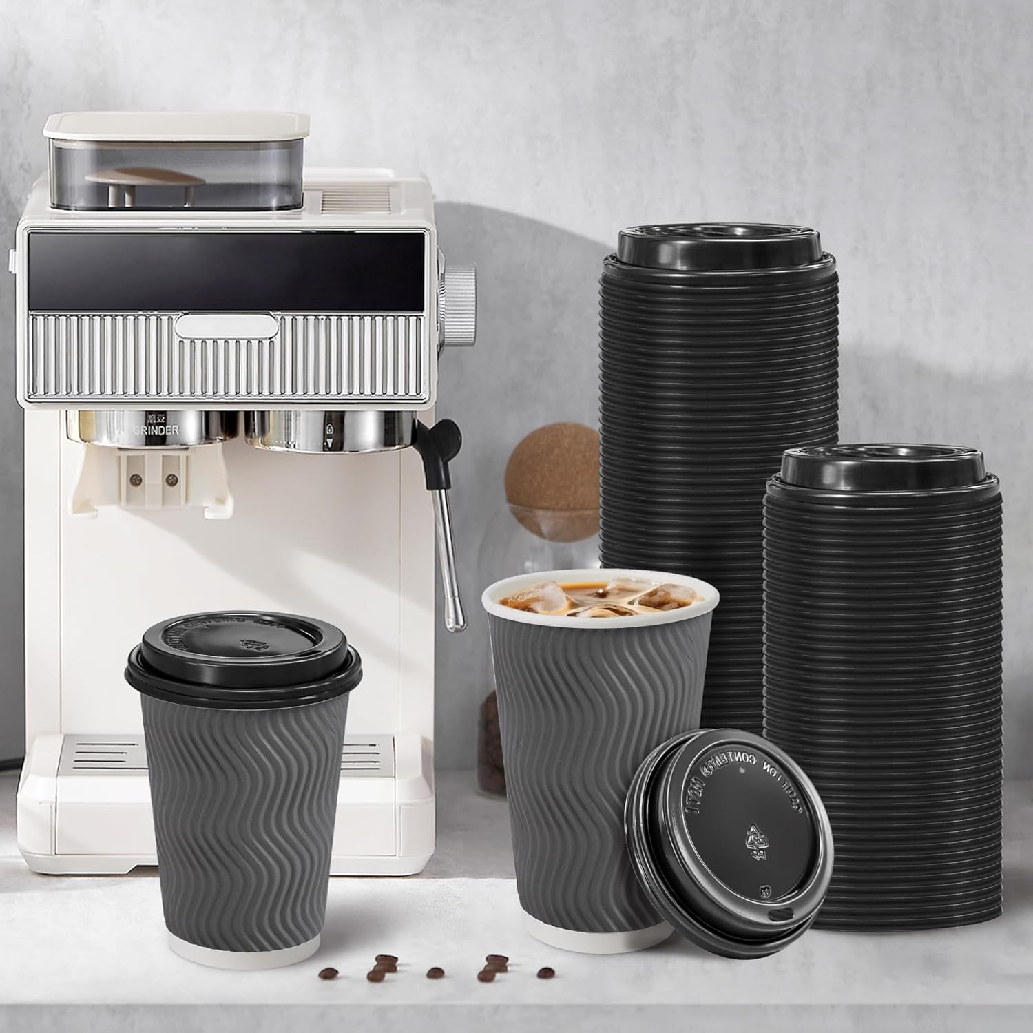 180 Pack Disposable Coffee Cup lids, 3.54'' Leak-Proof Disposable Plastic Cup Lids for 10, 12, 16, 20oz Paper Cups, Hot/Cold Drinking Cup Lids, Black
