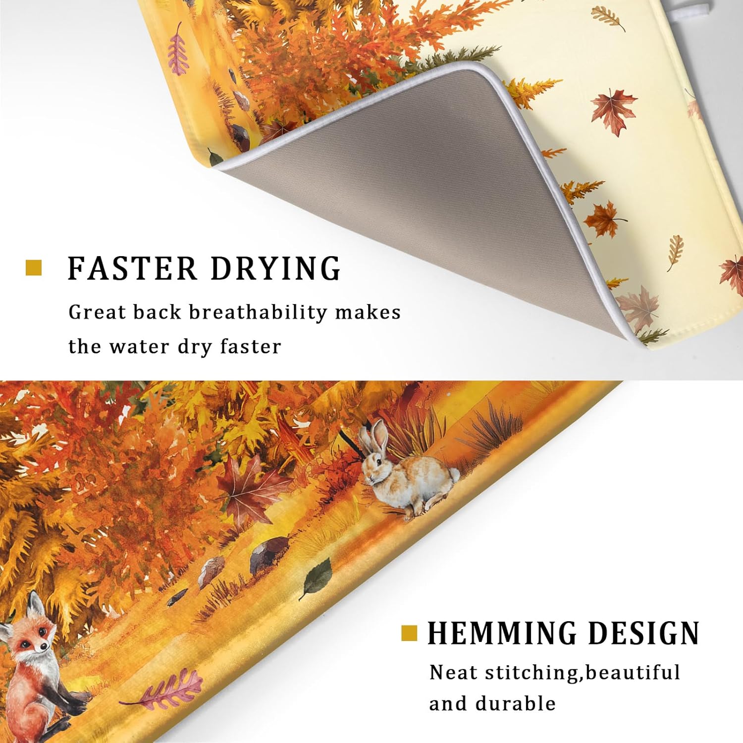 Autumn Forest Dish Drying Mat - Welcome Fall Fox Drying Pad for Counter Wildlife Dish Drainer Mat Cabin Animal Kitchen Accessories 18 X 24 Inch