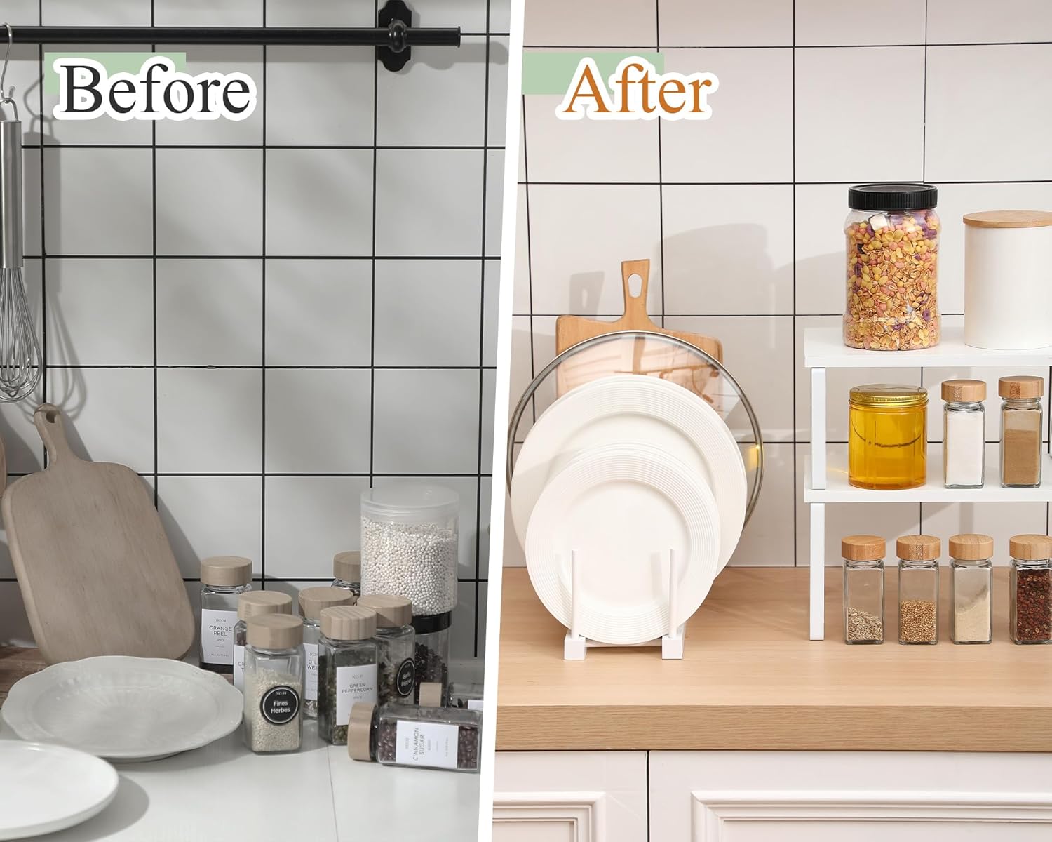 - Quality Material: these plate racks are made of quality natural bamboo, ensuring durability, allowing you to get in close contact with nature; These spice rack organizer made of quality wood and metal and can be stacked
