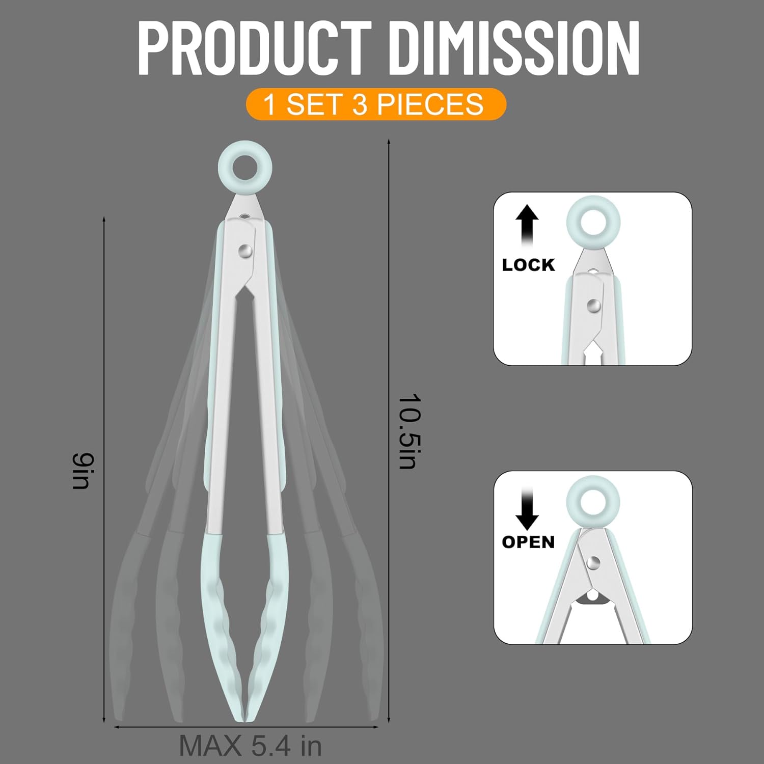 - TOP QUALITY: Hotec silicone tongs are constructed with 1MM Thickened high quality 304 stainless steel and Food Grade slicone, sturdy, heat resistance, anti-rust, anti-corrosion, light weight, easy to handle, like new forever. Package includes: 3 x 9-inch serving tongs (Gradient Blue)