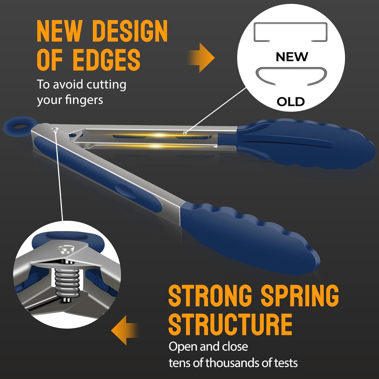 - ENGINEERING FOR SAFETY: Hotec Kitchen Tongs, Updated new design pattern for the handle, better protects your hands from cutting by the edge when you grip the handle. Easy to control the handle and to eliminate wobbling & any risk of burning your hands.
