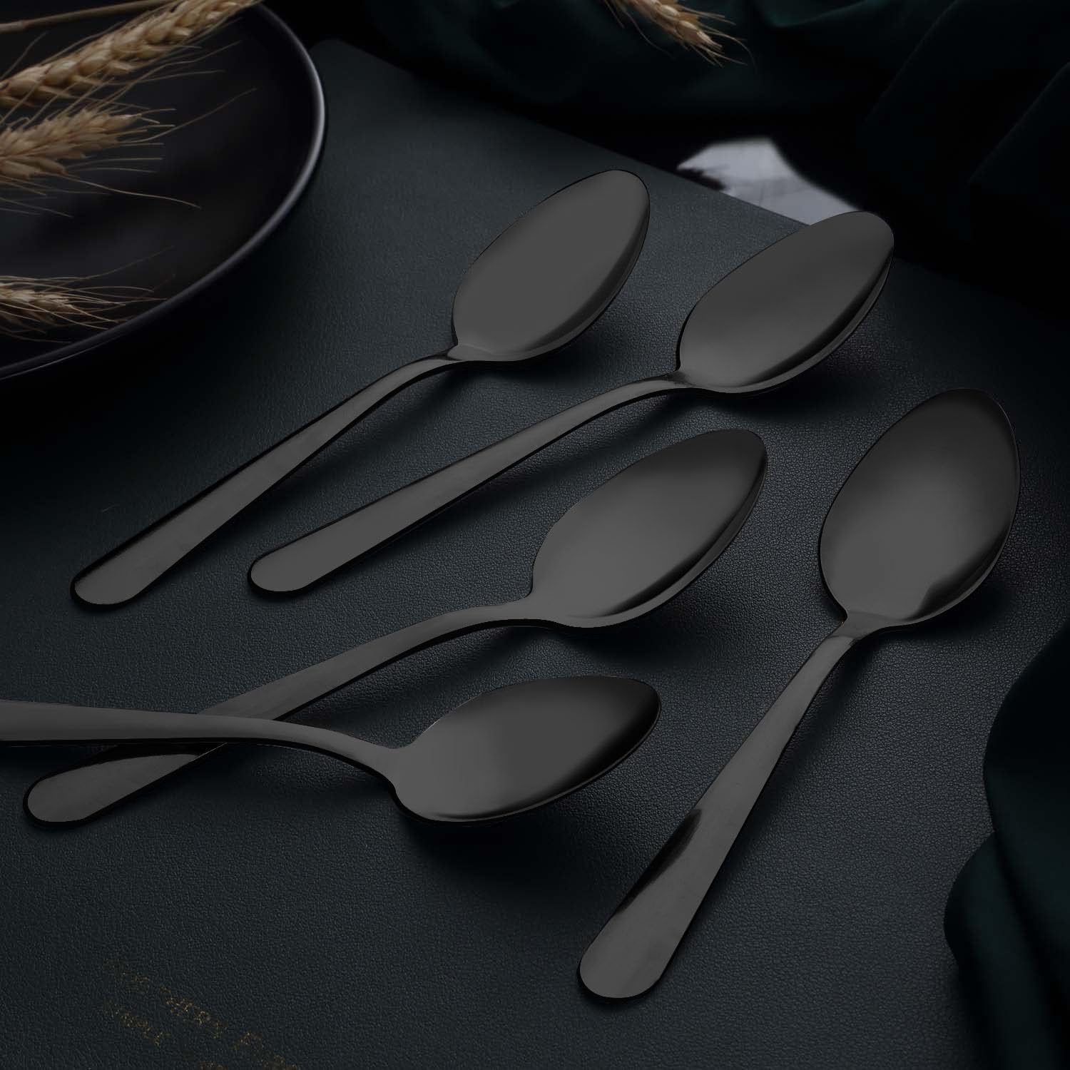 24-Piece Dinner Spoons Set (7.4 inch), Unokit Stainless Steel silverware, Tablespoon, Silverware Spoons Only for Home, Kitchen or Restaurant - Mirror Polished, Dishwasher Safe - Black