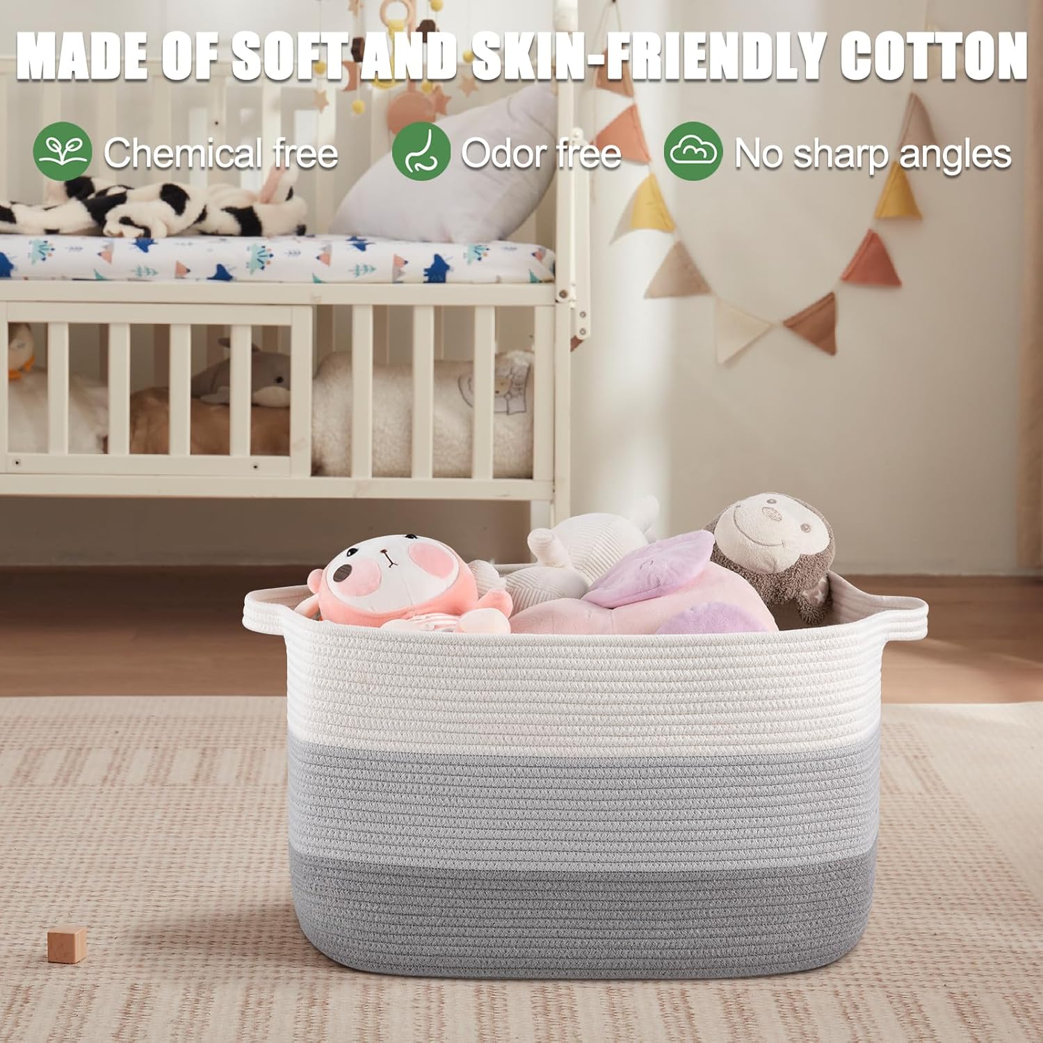 65L Large Storage Basket, Cotton Rope Woven Blanket Basket, Toy Storage for Baby Room, Living Room, Gradient Grey