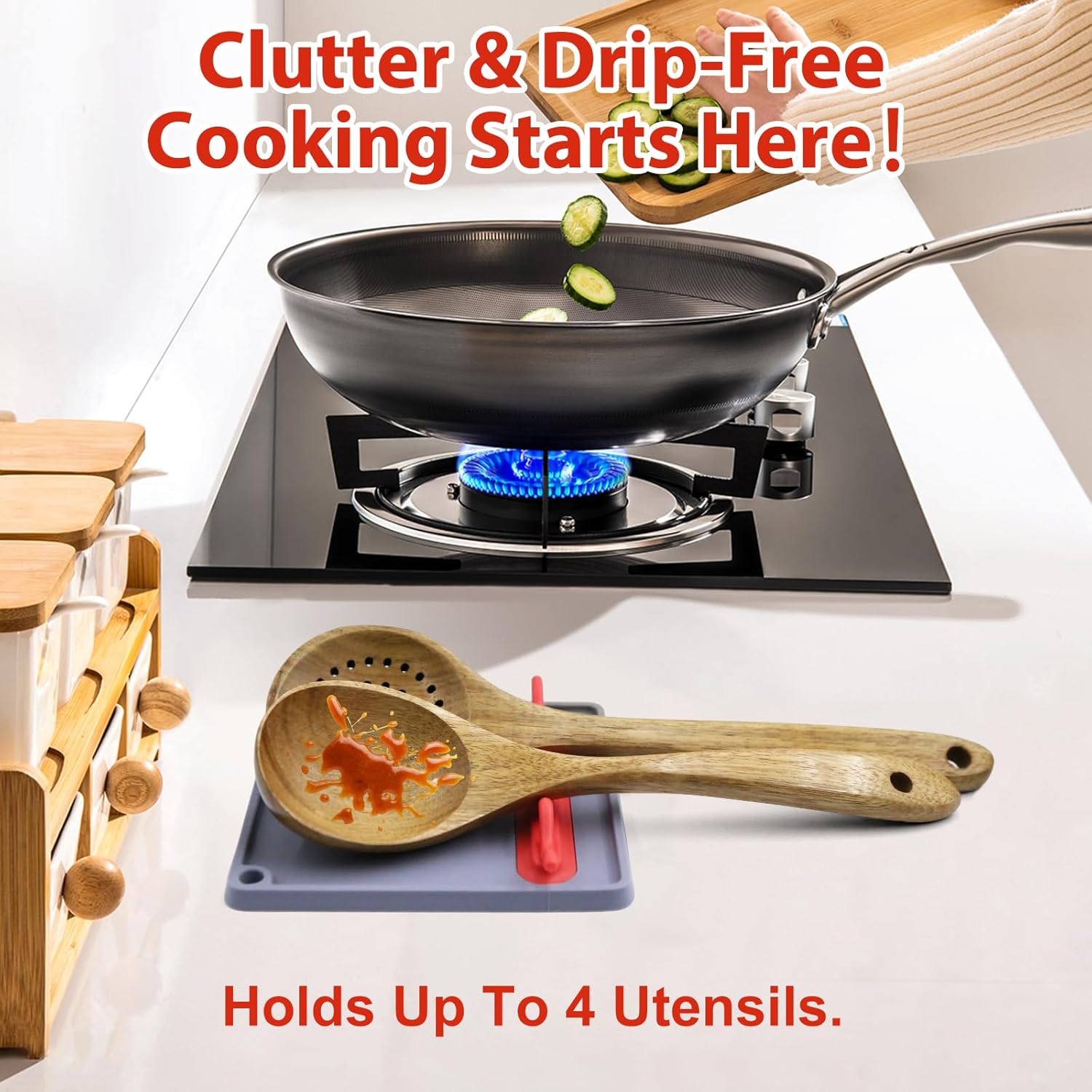 - Elegant Wave Design for Easy Use:Designed with a wave-shaped support, this silicone spoon rest makes it easier to place your utensils, unlike fixed compartment designs. The non-slip base ensures stability, whether on your stove top or kitchen counter, making it both functional and aesthetically pleasing