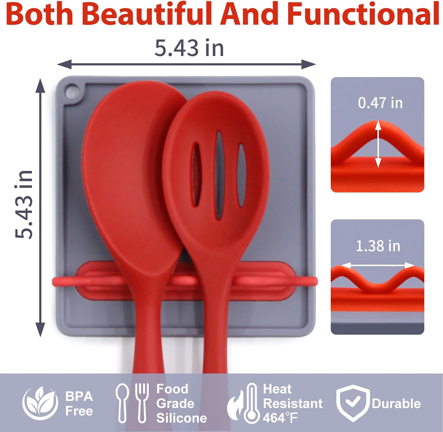 Silicone Spoon Rest for Stove Top, Non-Slip and Heat-Resistant, BPA-Free Kitchen Spoon Rest for Spoons and Ladles, Gray + Red