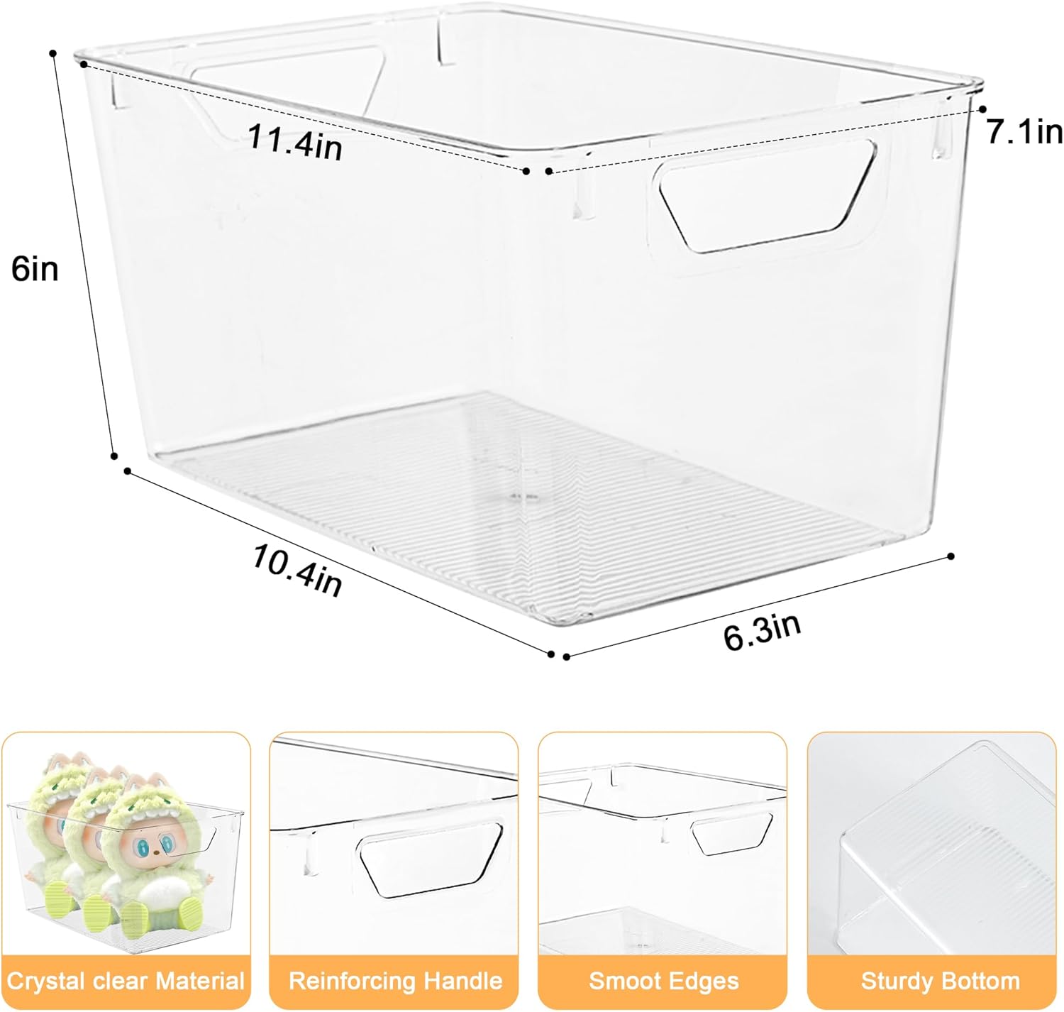 - Multipurpose Organizers:Set of 12 clear storage bins (11.4"L x 7.1"W x 5.9"H) perfect for pantry, fridge, cabinet, or bathroom,Ideal for food, snacks,condiments,bottled beers or office supplies