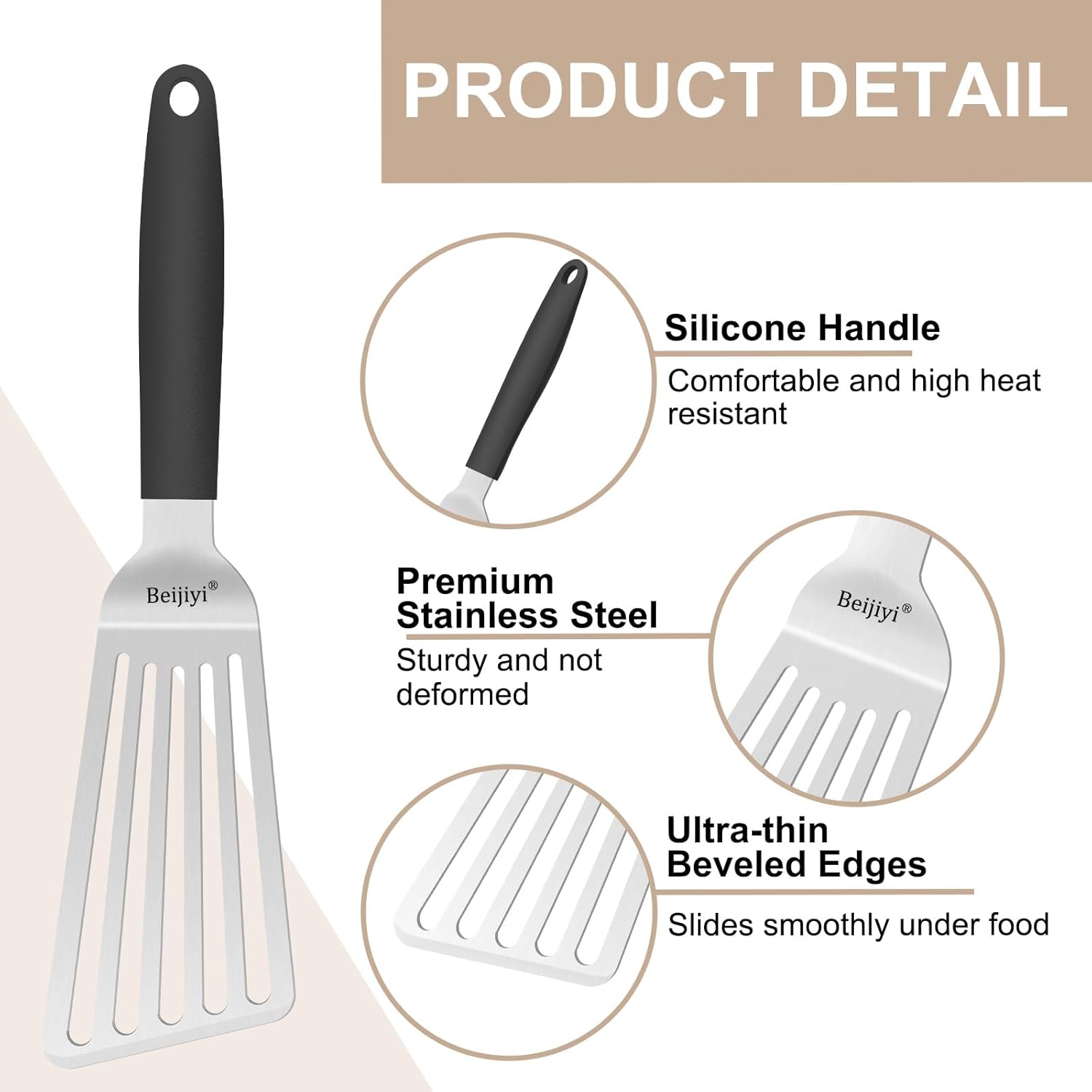 - Comfortable and Heat-resistant Handle: Stainless steel fish spatula with an ergonomic handle, its silicone features are non-slip, comfortable and heat-resistant, able to withstand high temperatures without melting, ensuring a secure and firm grip