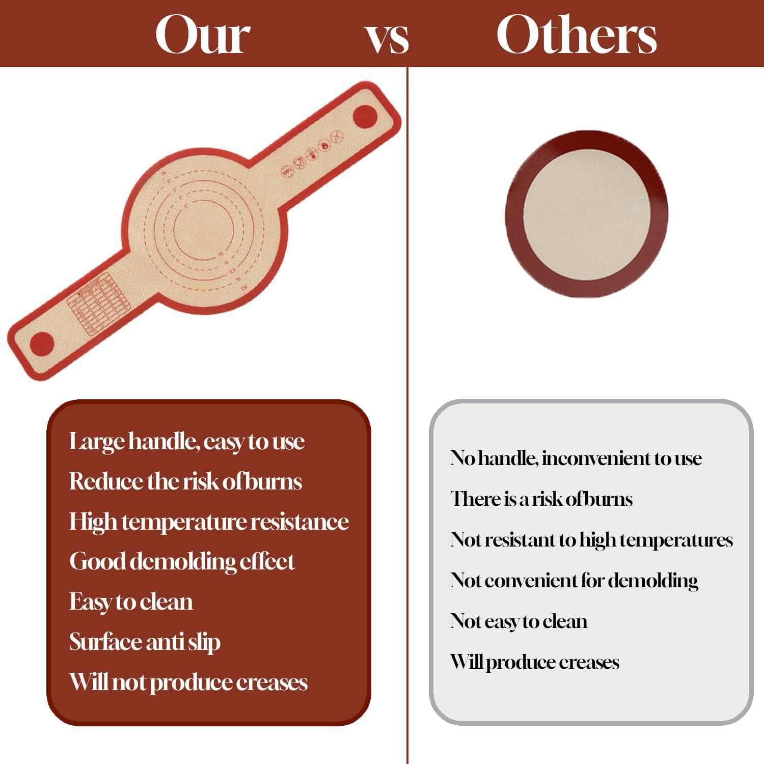 - Long handle design: We have designed reasonable long handles on both sides of the silicone bread sling we use in Dutch ovens, Eliminate the risk of burning your hands. The silicone bread sling can help you safely transfer dough to the Dutch baking tray and avoid hand burns when placing and removing bread, perfectly meeting your baking needs