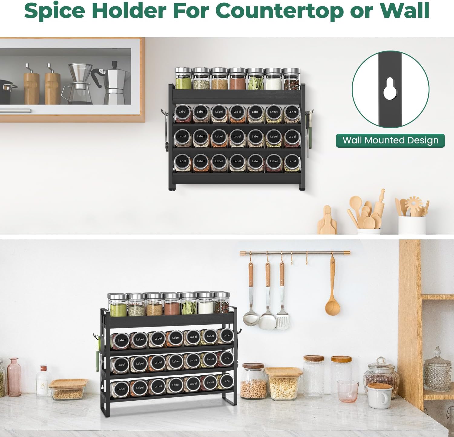 - Countertop & Wall Mount Use: Designed for flexible use on kitchen countertops or as a wall-mounted spice shelf, offering storage versatility to fit your kitchen layout and maximize limited space areas