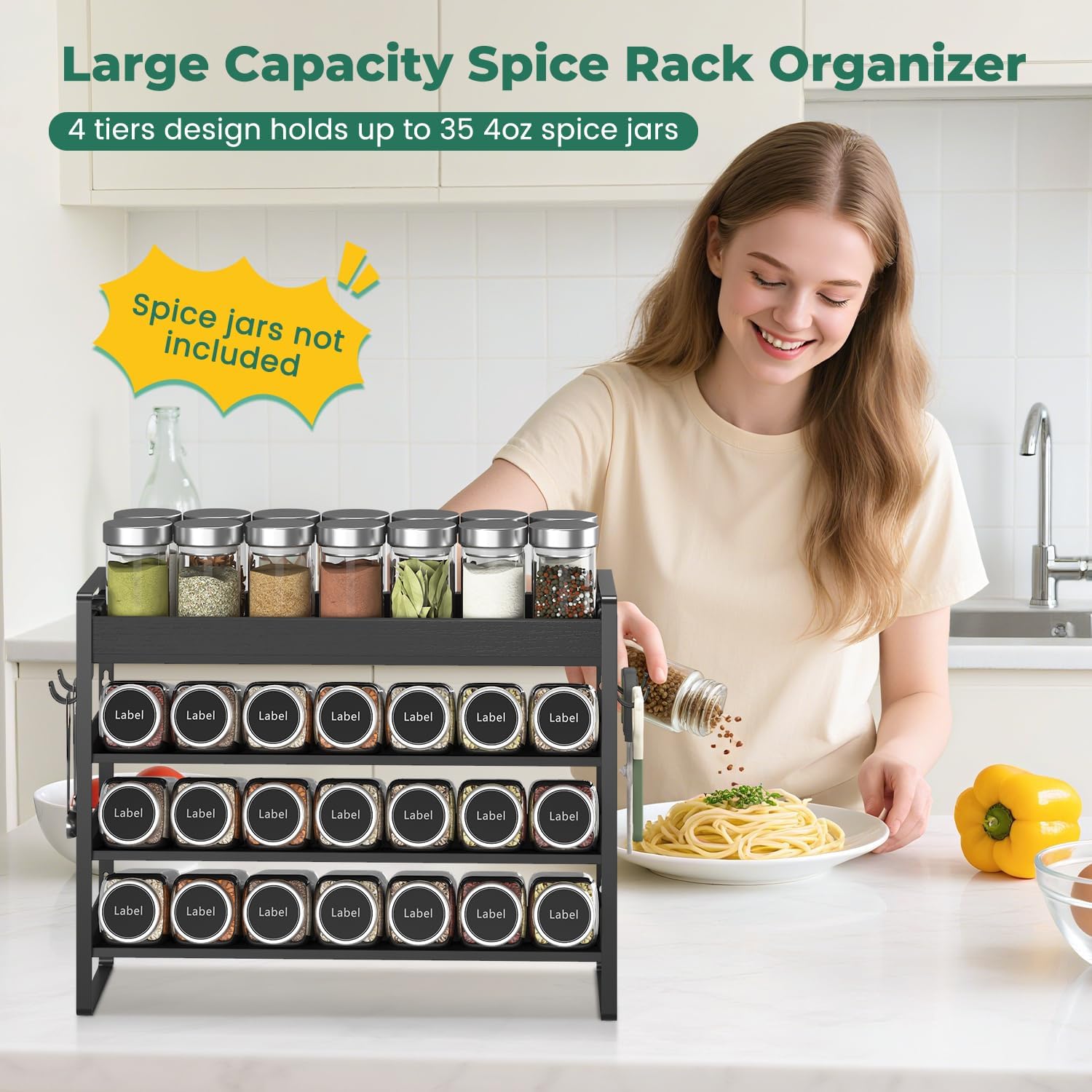- 4-Tier Large Capacity: Features a 4-tier design that holds up to 35 standard 4oz spice jars (spices and jars not included), helping you organize a wide variety of seasonings and condiments in one convenient spice organizer